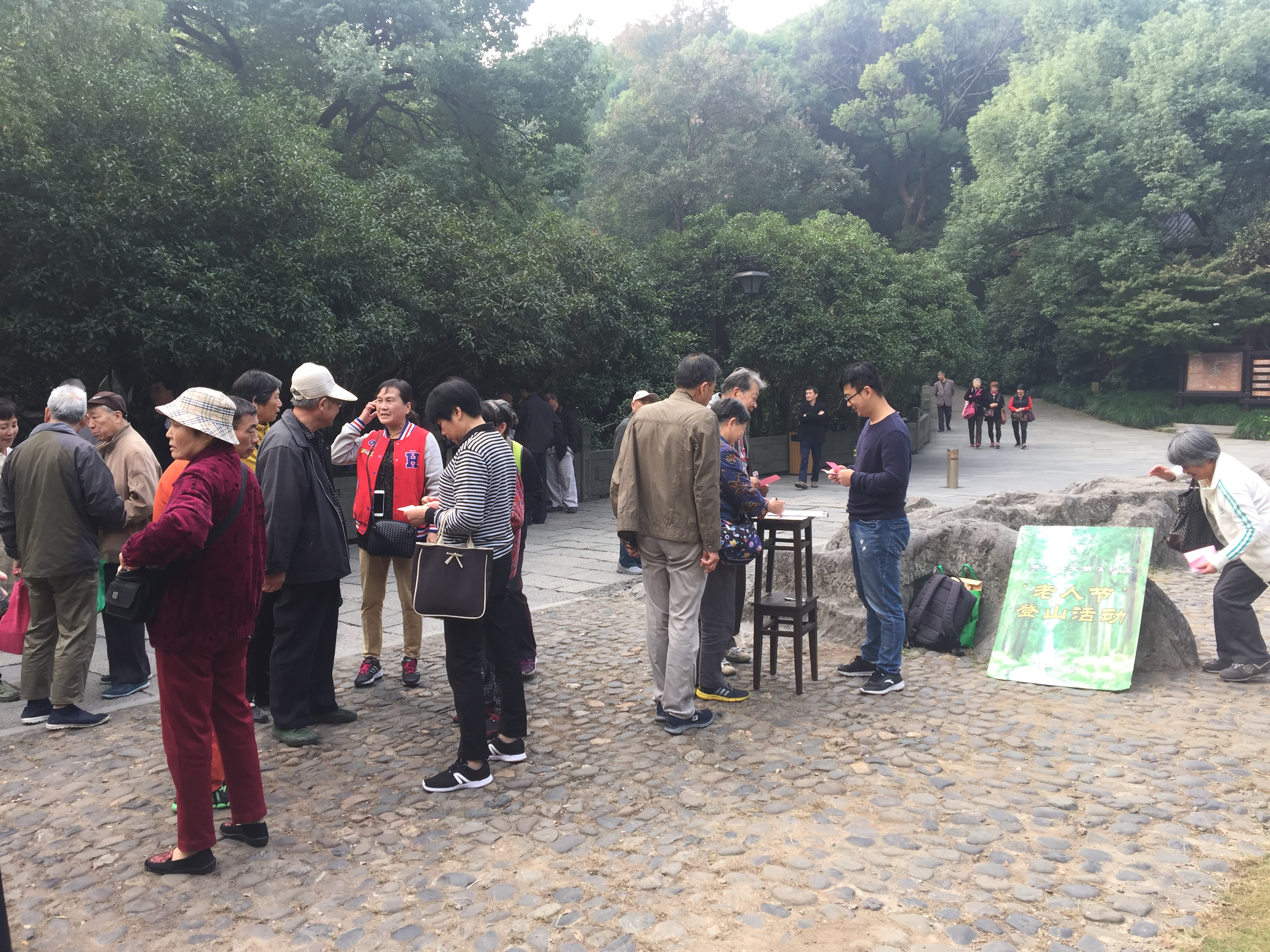 共有近400位老同志参与此次老人节登山活动,年龄最长者为92岁高龄的徐英含教授。