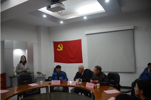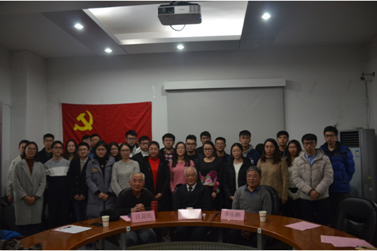 李乐鹏老师首先发言,他说,明天就是“南京大屠杀”80周年祭。80年前,中国人民还是一个任人宰割和屠杀的年代。80年后的今天,我们的国家正从站起来到富起来,并转变到强起来。青年大学生是国家未来的希望,作为学生党员更要能够担起重任,成为党的接班人。同时,他就“在鲜红的党旗下”活动平台的建立作了说明。他说,这个活动平台是由学校关工委与学工部联合打造的一个学生思政教育平台。旨在贯彻落实十九大精神和全国高校思政工作会议精神,以立德树人为根本,以理想信念教育为核心,以社会主义核心价值观为引领,通过老同志与青年大学生互动交流等形式,教育和引导青年一代“听党话,跟党走”。他希望同学们通过这个平台能有所收获。