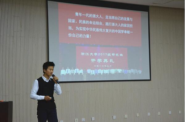 接着,浙江大学党的十九大精神宣讲团纵榜正同学聚焦于《浙大人的家国担当》,从于子三事迹、宋明亮事迹、浙江大学入伍大学生群体事迹出发结合自身兵役经历,生动践行当代浙大人家国情怀为大家带来了第二堂微党课。他说,总书记在十九大报告中提出,广大青年要坚定理想信念,志存高远,脚踏实地,勇做时代的弄潮儿,在实现中国梦的生动实践中放飞青春梦想,在为人民利益的不懈奋斗中书写人生华章!从十九大习总书记的期望到个人自身学习经历,纵榜正说,青年一代的浙大人,定当将自己的发展与国家,民族的命运结合,践行浙大人的家国担当,为实现中华民族伟大复兴的中国梦奉献一份自己的力量。