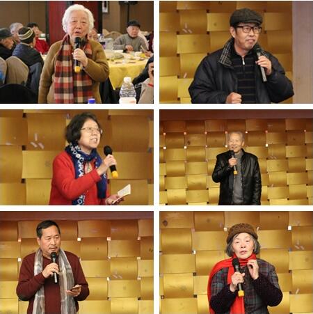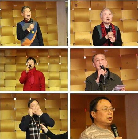 在这一年一次的大团圆日子里,长久不见的老朋友、老同事相见格外激动,或热情相拥,或握手相谈,其乐融融。在吴昶老师的带动下,更是有一位位退休老师纷纷起身为团拜会献歌助兴。彭孝真老师的《夕阳红》、徐斌老师的口琴独奏《梁祝》、张一忠老师的《牡丹之歌》、陆伸老师的京剧清唱、张珏老师的《歌颂版心经》、张建民老师的《WHATEVER YOU WILL BE WILL BE》、吴昶老师的《我们这一辈》、张振中老师的京剧《今日痛饮庆功酒》、邵思婵老师的《不忘初心》、陈原真老师的俄语歌《共青团员之歌》、徐斌老师的《月夜》、徐哲之老师的《看到你们格外亲》……一曲曲美妙动人的音乐,让大家久久沉浸在欢乐之中。