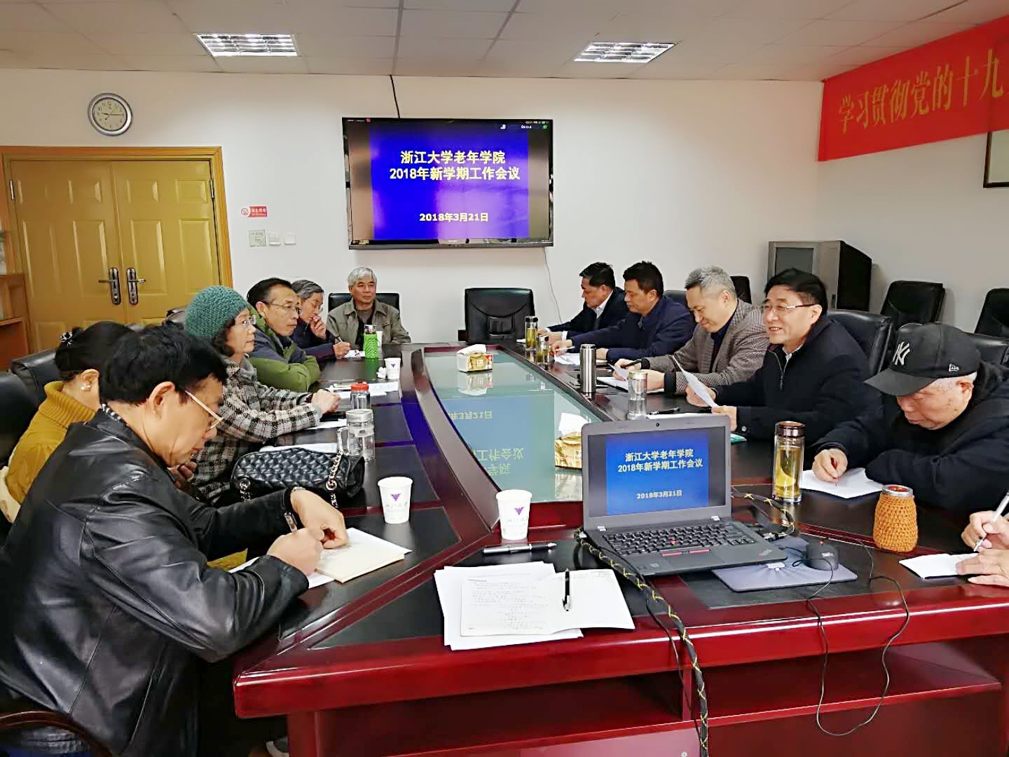 3月21日上午,浙江大学老年学院2018年新学期工作会议在离退休工作处玉泉校区三楼会议室顺利召开。离退休工作处处长徐国斌、副处长王剑忠和老年学院及各校区分院院长、副院长、各校区老年学院工作人员出席会议,会议由王剑忠主持。