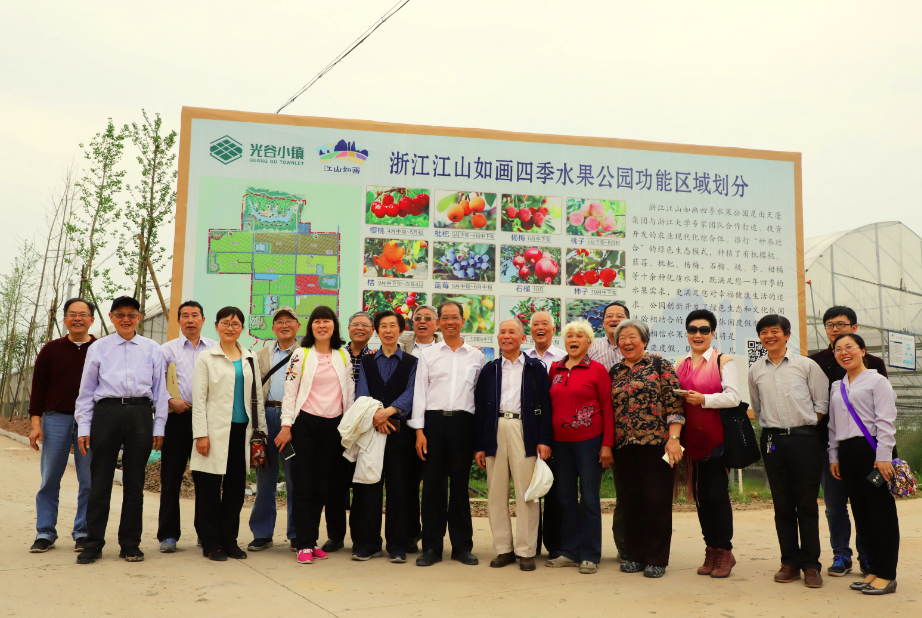 宣讲团一行实地参观考察了天蓬集团和浙江江山如画四季水果公园。江山如画,在方圆780亩的杂草丛生的贫困山地,浙大关工委求是宣讲团特约宣讲员张放教授用三年的精心规划、辛勤劳作和天蓬集团的锐意创业者合作创造了奇迹。一座生态观光的诗意庄园,一幅都市乡村的乐居画卷,一片现代农业的科教基地,一个绿色健康的休闲天堂正在江山深处崛起。