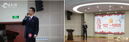 第一环节是微党课和党务知识问答环节,12位参赛选手结合自己的专业特点和生活经历,为现场观众奉献了节奏紧凑、气势磅礴、生动有趣的微党课。