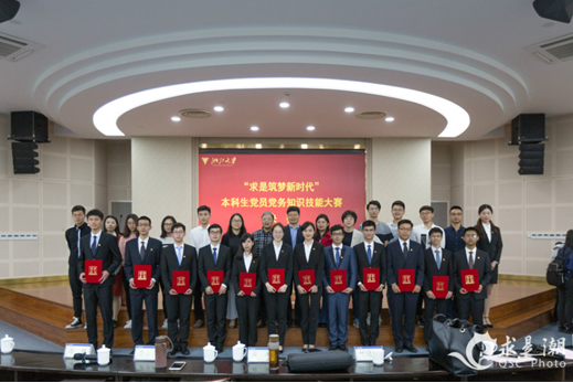 成立仪式后,“求是筑梦新时代”本科生党员党务知识技能大赛决赛正式拉开帷幕。应飚、叶晓萍、颜鹂、李乐鹏和潘健担任大赛评委。决赛由学生研习会成员董萌苇主持。