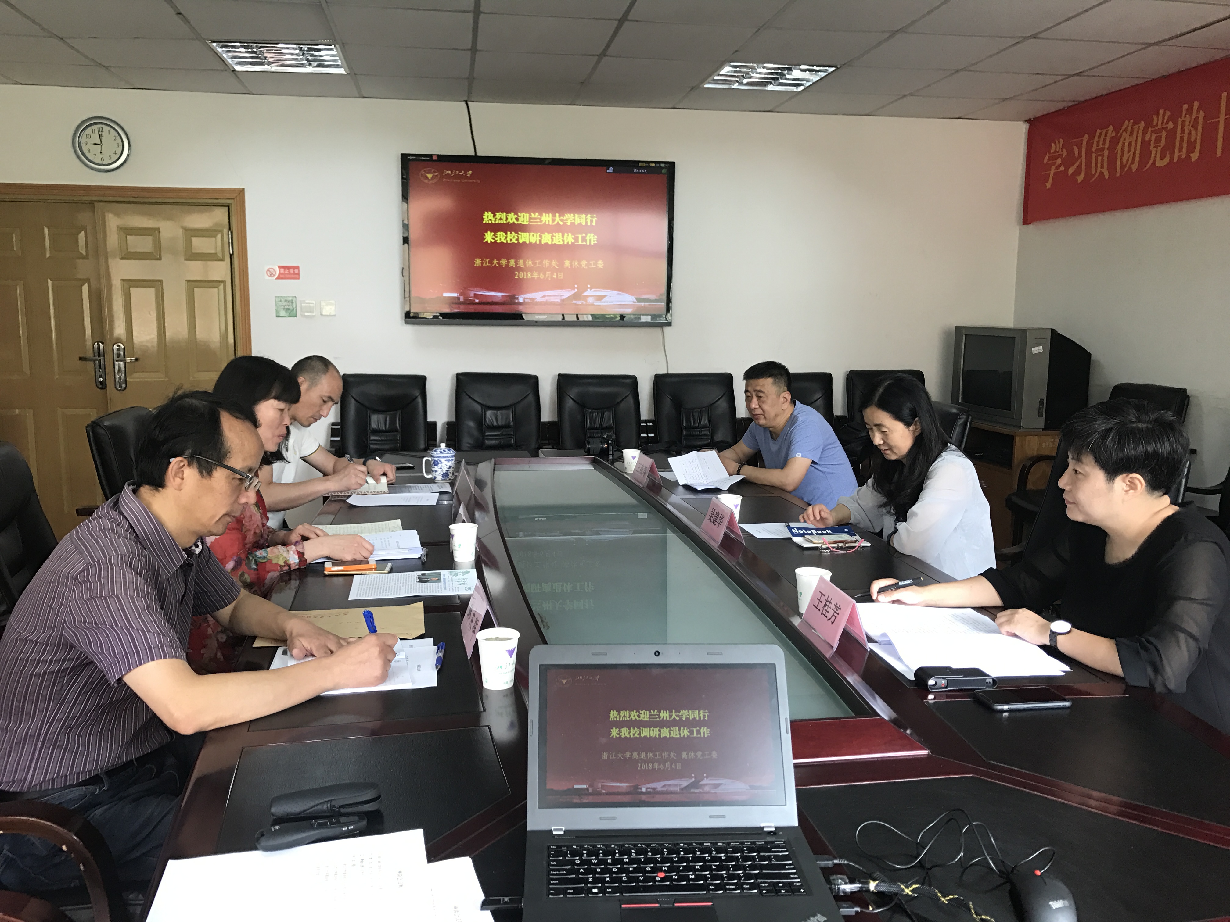 2018年6月4日上午,兰州大学离退休工作处副处长吴建华一行三人来我校调研。我校离退休工作处朱征、韩东晖、俞文胜、王卓尔等同志参加座谈交流。