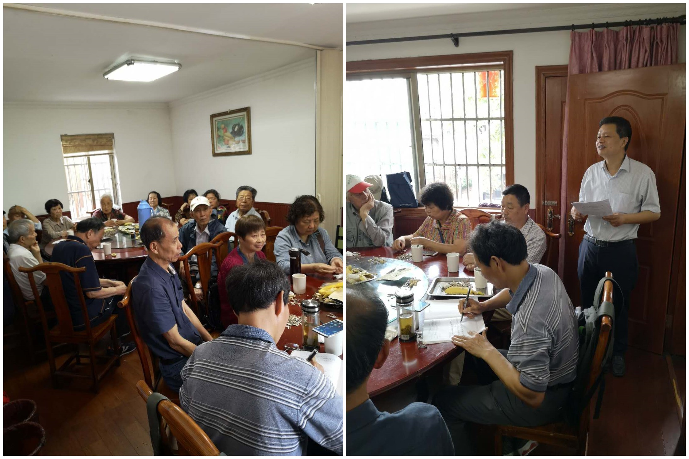 上午,细雨蒙蒙,凉风习习,大家乘车来到了青芝坞的一家农家乐。青芝坞,毗邻玉泉校区,是近年新开发的一处农家乐景点,亦是城中村改造和美丽乡村建设的一个亮点。为增进广大党员对学校新变化的了解,特邀请了离退休工作处副处长王剑忠参加活动,与大家互动交流。王剑忠为大家介绍了十九大以来学校创新发展的新形势、新变化和新成果,并就大家关心的校区管理、养老医院建设、家属区住宅电梯安装以及有关福利等问题作了解答。