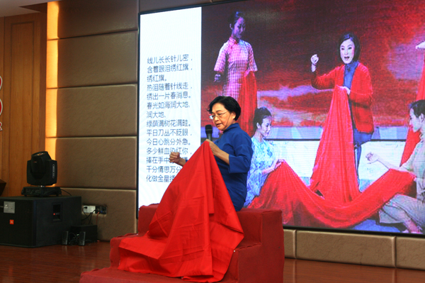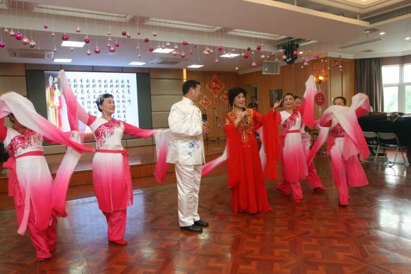 京剧队的王丽华、汪定焓老师与舞蹈队联袂演绎的《大唐贵妃》选段《蝶恋》气势磅礴,绝佳的唱功和优美的舞蹈表演给大家留下了深刻印象。演出节目中还有表现形式新颖活泼、惟妙惟肖的越剧《红丝错》选段《手抱孙子笑煞人》。