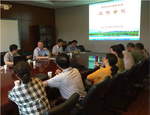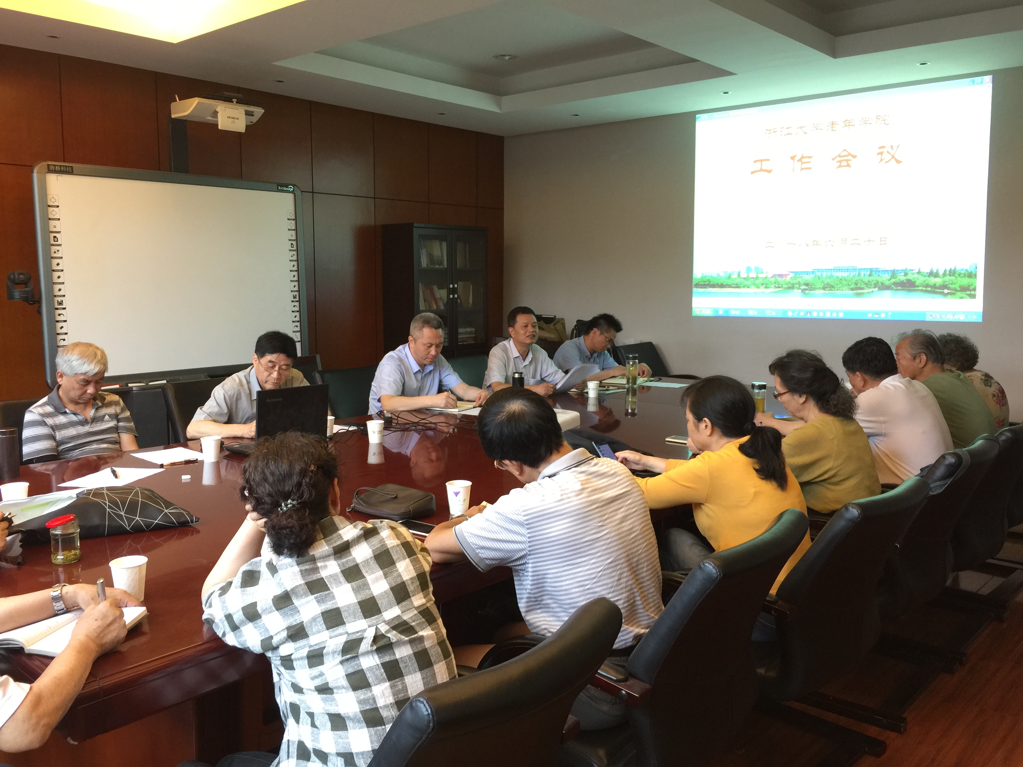 2018年6月20日上午,浙江大学老年学院在紫金港校区白沙综合楼207会议室召开工作会议,离退休工作处处长兼离休党工委书记徐国斌、离退休工作处副处长兼离休党工委副书记王剑忠、离退休工作处副处长兼离休党工委副书记成光林、各校区分院正、副院长出席,会议由老年学院院长林荣堂主持。