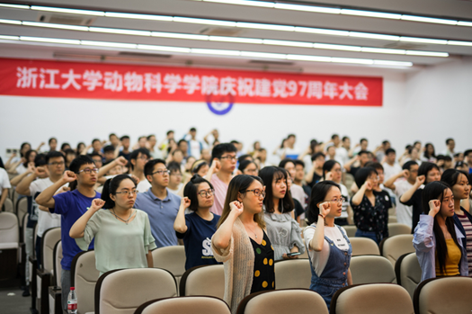 6月29日下午,浙江大学动物科学学院在E122报告厅举行了纪念建党97周年暨“七一”表彰大会。学院党政班子成员、纪委委员、各党支部书记、支委、党员代表、受表彰的先进个人和先进集体代表、2017年新发展党员、入党积极分子,以及2018年毕业生党员等200余人参加了此次会议。大会特邀浙大关工委副主任、求是宣讲团成员王明华教授做主题报告。大会由学院党委副书记叶艇同志主持。