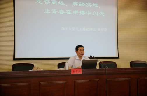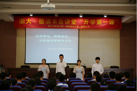 “浙大·德清求是讲堂‘开学第一课’”由浙大关工委和德清关工委联合打造,旨在为德清新入学的高中生开展励志教育。自2015年以来,已先后有何亚平教授、王明华教授、邹先定教授前往开讲。今年是第四讲,由张梦新教授主讲。