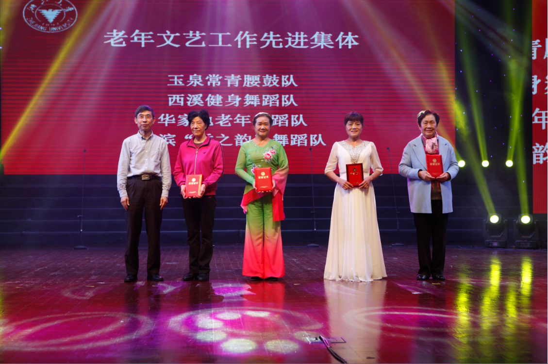 在庆祝大会上,学校对2016-2018年度积极参加省、市、区、街道及学校老年文艺活动,热爱党,热爱祖国,热心奉献,传播正能量的4个老年文艺工作先进集体、18位老年文艺工作先进个人进行表彰。张校长与校老干部工作领导小组成员单位的负责同志、玉泉校区管委会负责同志为获奖集体和老同志颁奖。