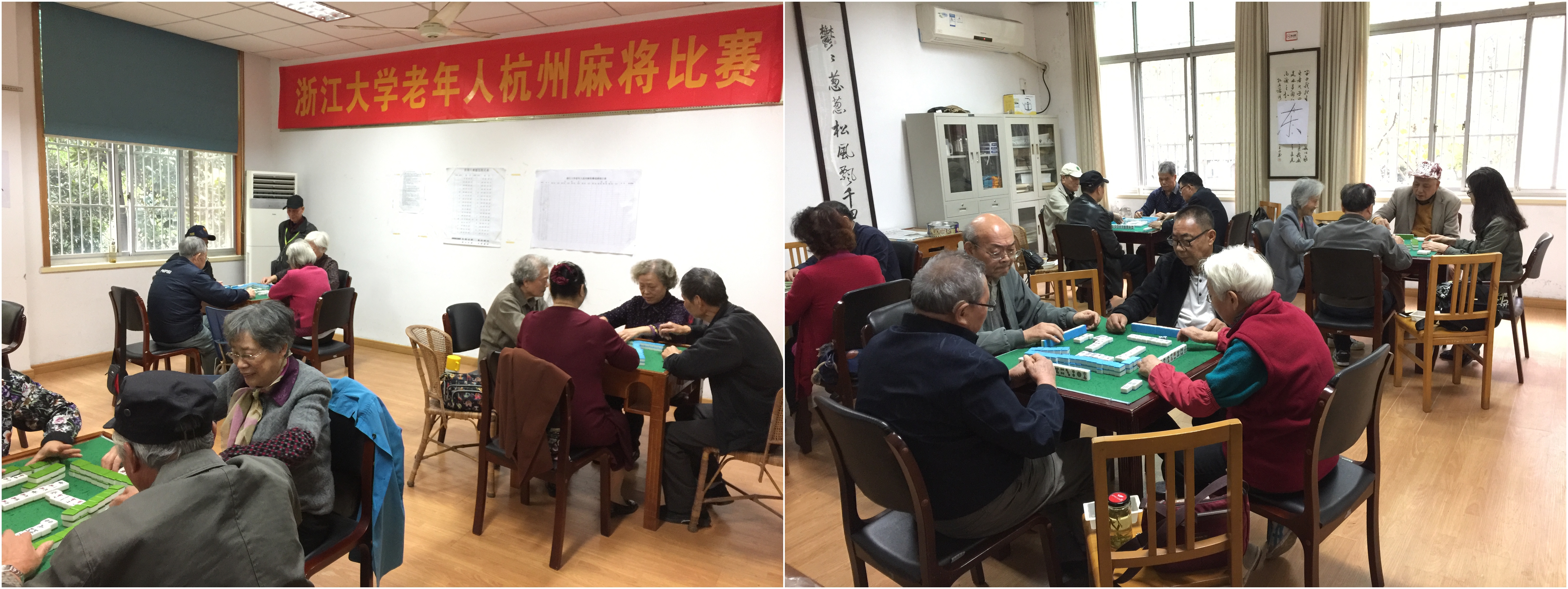 10月26日,浙江大学第四届老年人杭州麻将比赛在我校西溪校区东横教学楼活动室举行,40位麻将爱好者参加了比赛。 麻将是一项传统的智力游戏和休闲娱乐活动,集益智性、趣味性、博弈性于一体,通过麻将以牌会友、健脑益智,深受老同志喜爱。