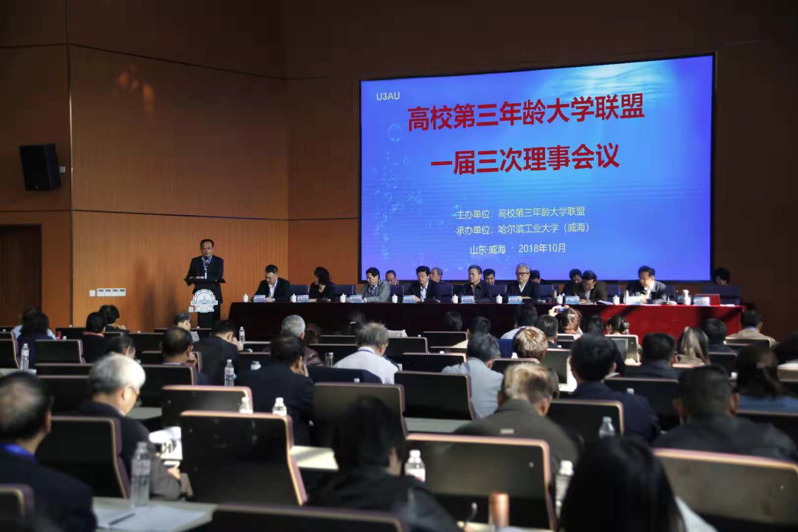 2018年10月25--26日,高校第三年龄大学联盟一届三次理事会议在哈尔滨工业大学(威海)召开,来自全国各地57个理事单位的99位代表参加会议,我校离退休工作处副处长王剑忠、老年学院副院长方旭升参加了会议。本次会议的主题是:学习习近平新时代中国特色社会主义思想,贯彻《老年教育发展规划(2016-2020年)》;推进高校第三年龄大学联盟内涵建设。