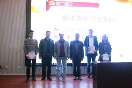 活动为十月份入党的同志集体庆祝了“政治生日”。党员代表上台领取贺卡并分享自己思想上的成长历程,并祝愿我们伟大的中国共产党永葆光辉!