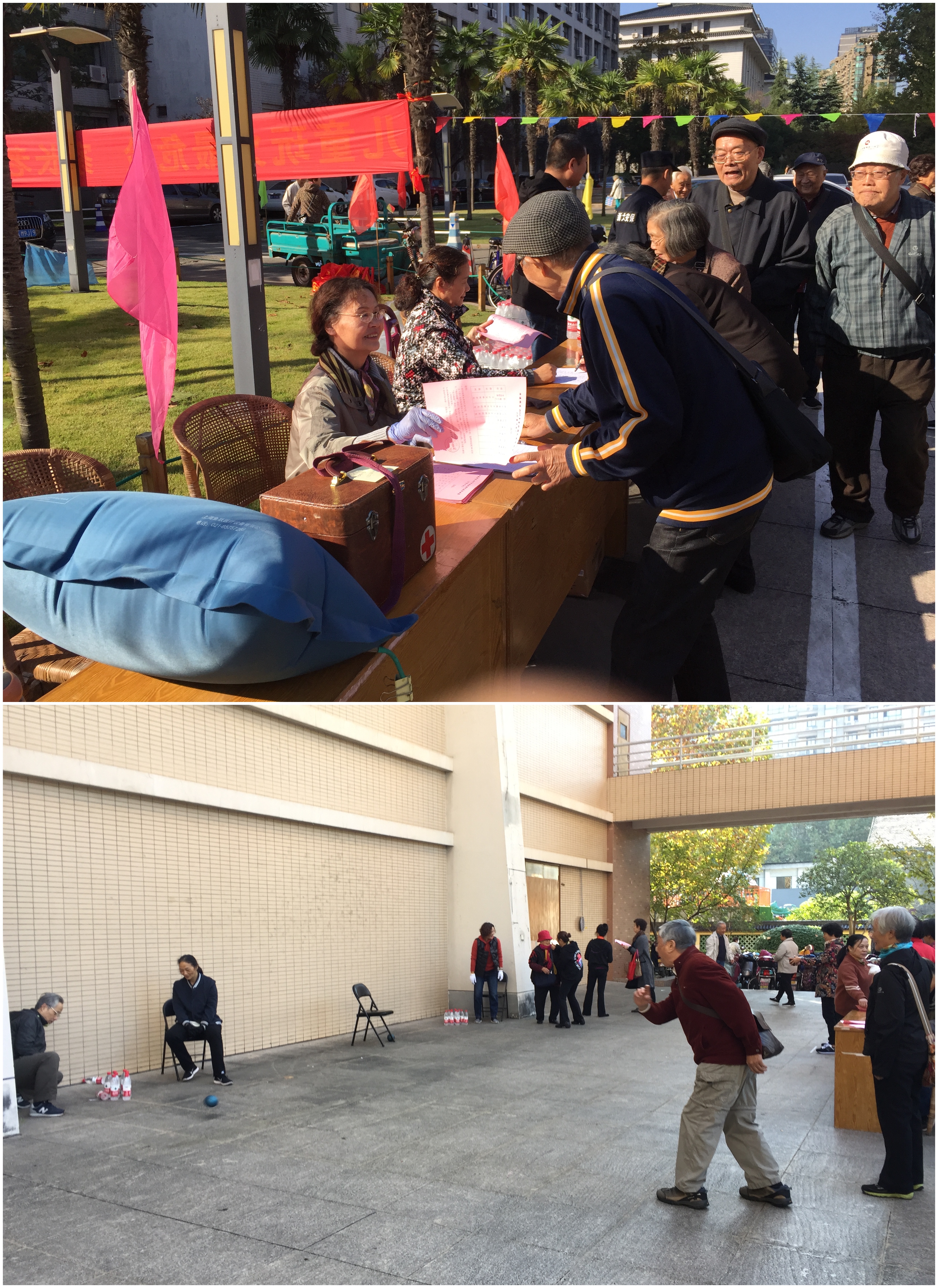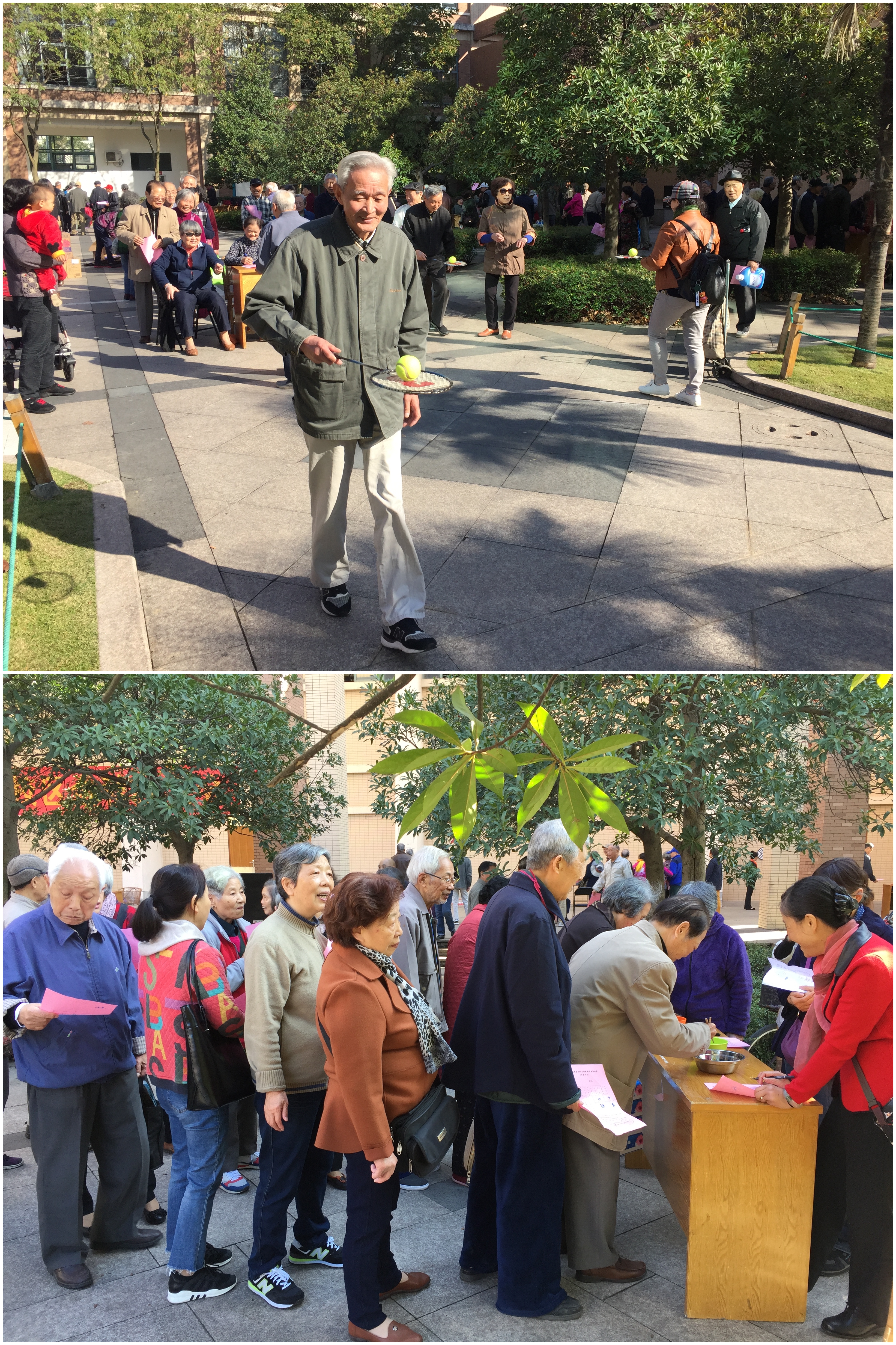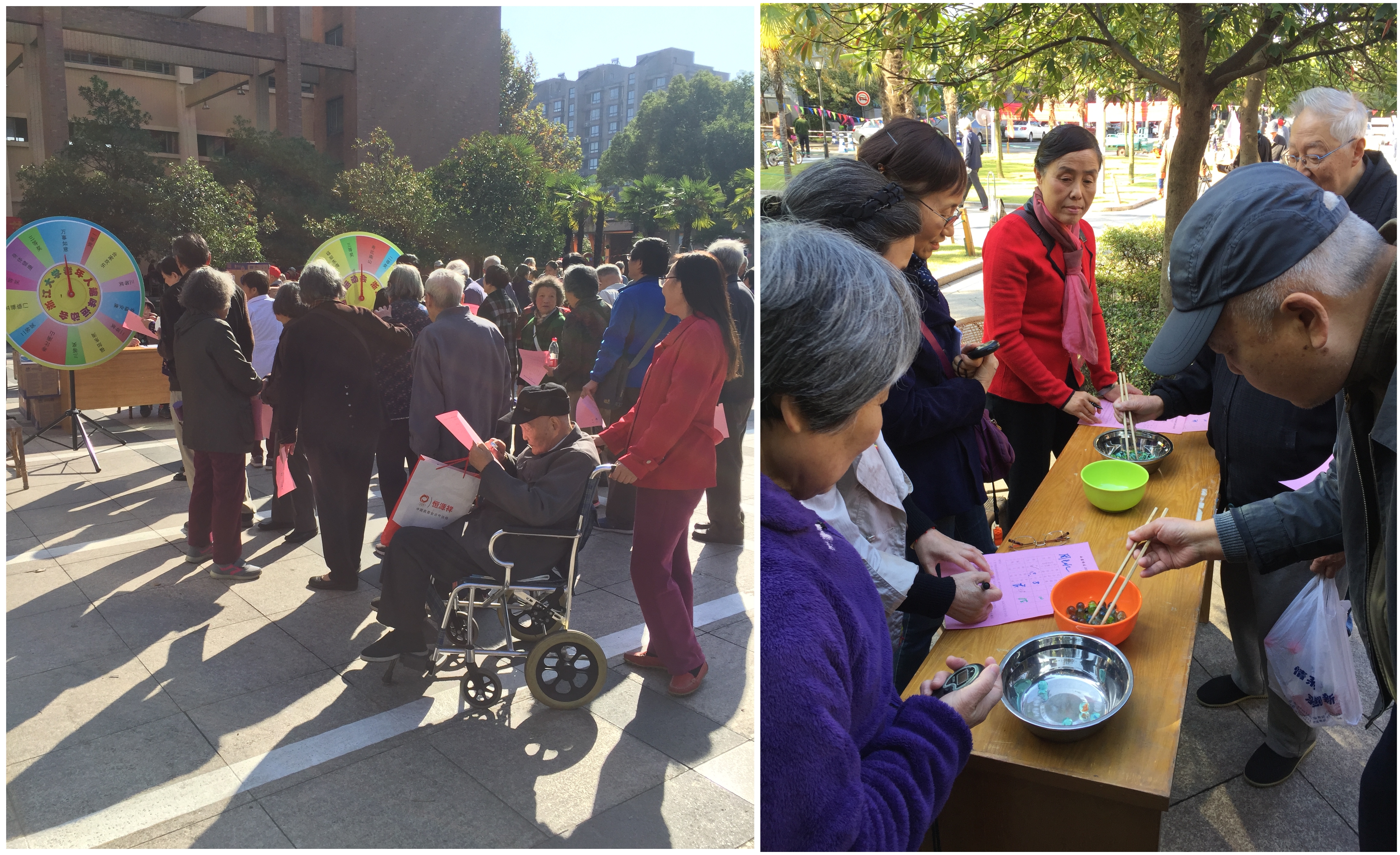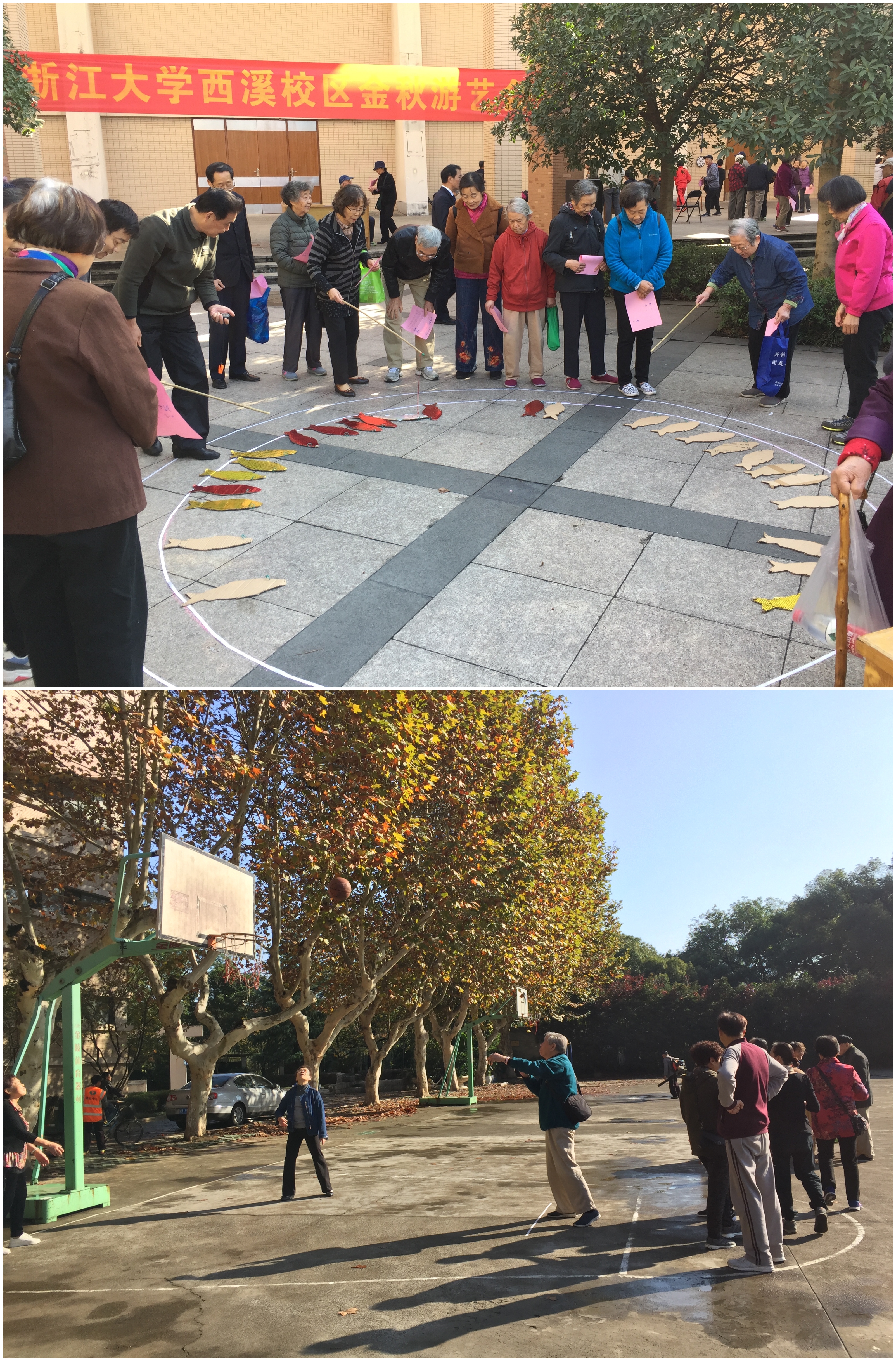2018年11月9日,久日阴雨终放晴,一年一度的金秋游艺会在西溪校区如期举行,老同志们早早就来到现场,跃跃欲试。