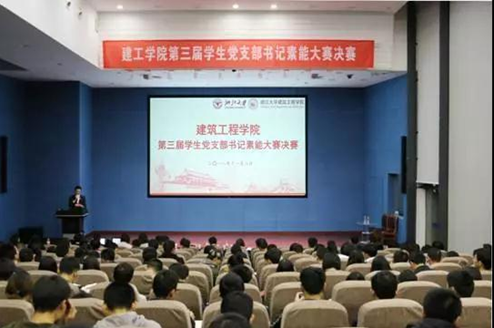 2018年11月8日晚,建筑工程学院在安中大楼大报告厅举行第三届学生党支部书记素能大赛决赛。校关心下一代工作委员会求是宣讲团成员、人文学院教授许为民老师、校党委学生工作部副部长潘健老师、校党委组织部副部长蔡荃老师、校团委副书记梁艳老师、建工学院党委副书记张威老师出席了本次决赛并担任评委。本次活动也是建工学院学生党员“先锋学子”全员培训院级层面的活动,来自各学生党支部的230余名学生党员观摩了本次决赛。本次活动由建工学院学生工作办公室主办,学院学生党员素质发展中心承办,由学院学生党员素质发展中心的吴�同学主持。