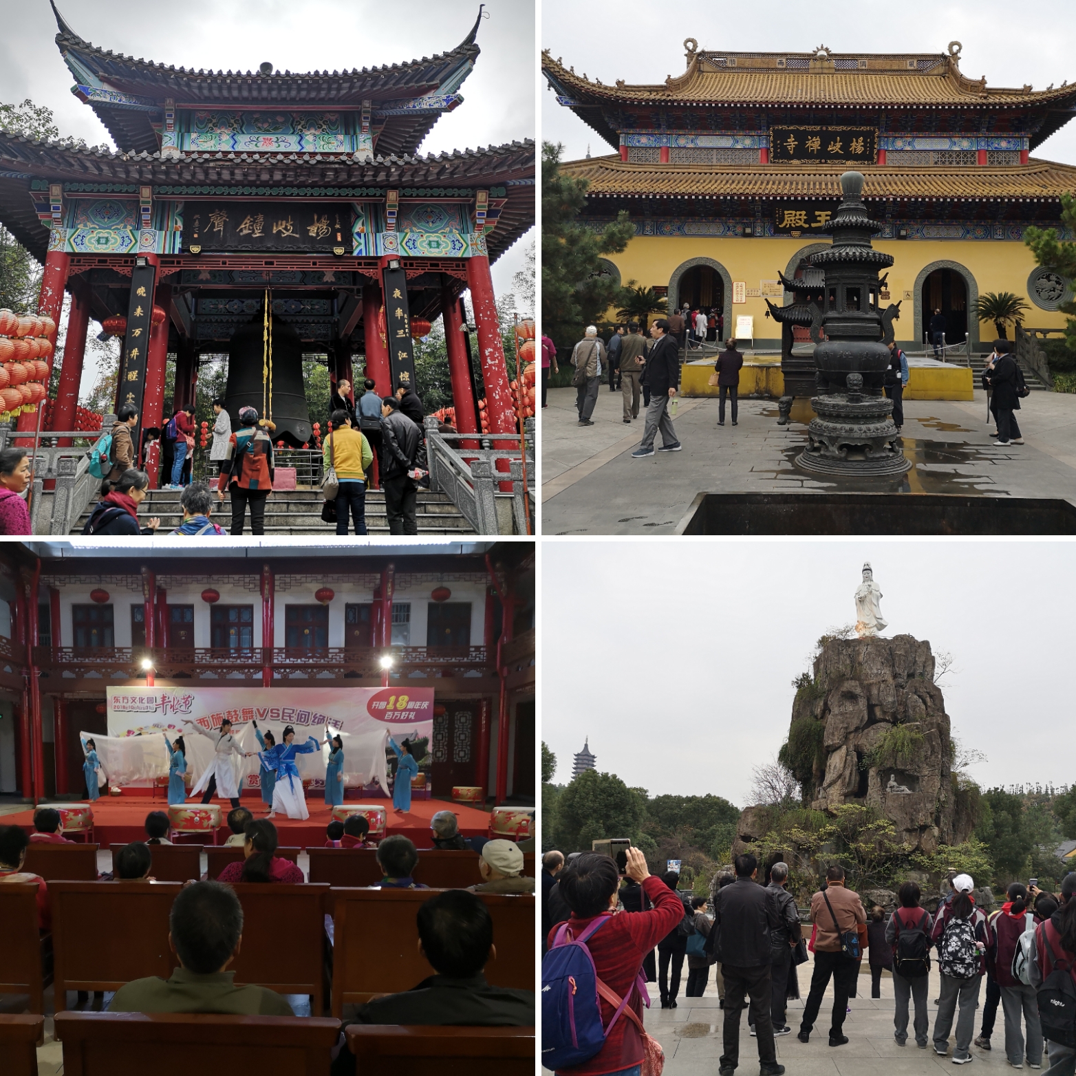 东方文化园位于钱塘江、富春江、浦阳江三江汇合处的萧山义桥镇杨歧山麓,是一个融合园林文化,宗教文化,养生文化于一体的杭州萧山重点旅游项目。文化园左邻湘湖,右邻鱼浦,浅山碧水,风光秀丽。园内其中一处著名景点,杨岐禅寺,钟楼巍峨耸立,被誉为“江南钟王”的铜钟悬挂其内,再现了灭绝已久的“湘湖八景”之一的“杨岐钟声”古景。在讲解员的带领下,老师们步伐矫健,沿路敲击各吉祥钟,最后到“杨岐钟楼”敲击“江南钟王”,在乐趣中以求消除各种烦恼。经过艺术长廊,来到地宫广场,参观万佛金塔地宫,大家无不为其金碧辉煌的建筑而感叹。
