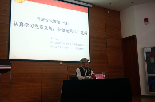 10月19日下午,浙江大学建筑工程学院2018年第二期入党积极分子培训班开班仪式在安中多功能厅正式举行。本次培训班旨在加强对学院选拔出的78名学生入党积极分子进行系统性党的知识教育培训,从深化党的基本理论、基本路线、基本纲领和基本经验教育入手,进一步提高入党积极分子的政治素质和理论修养。浙江省新四军历史研究会宣讲团副团长、浙江大学关工委顾问郑元康教授应邀为本次培训班学员讲授了第一课。