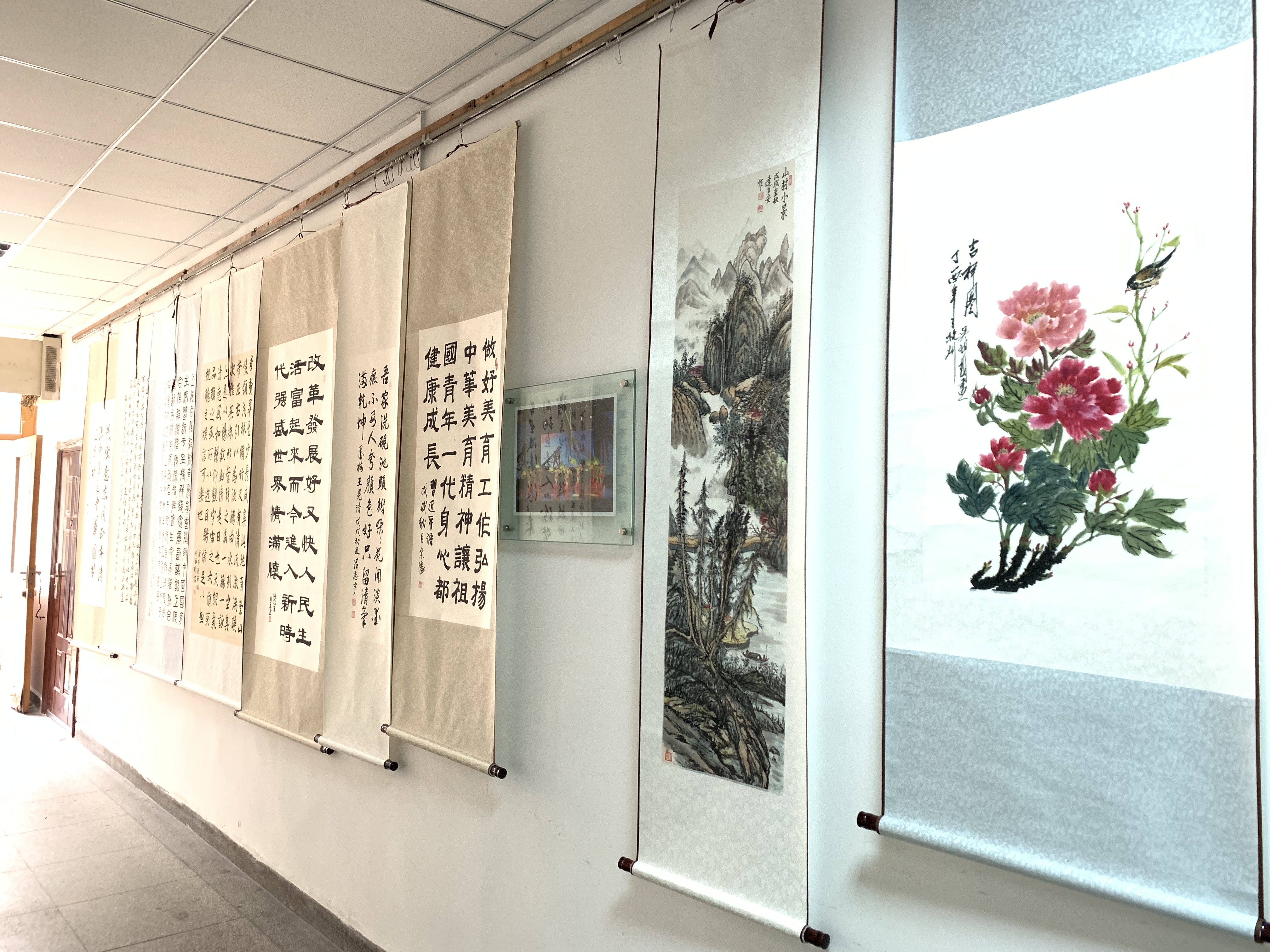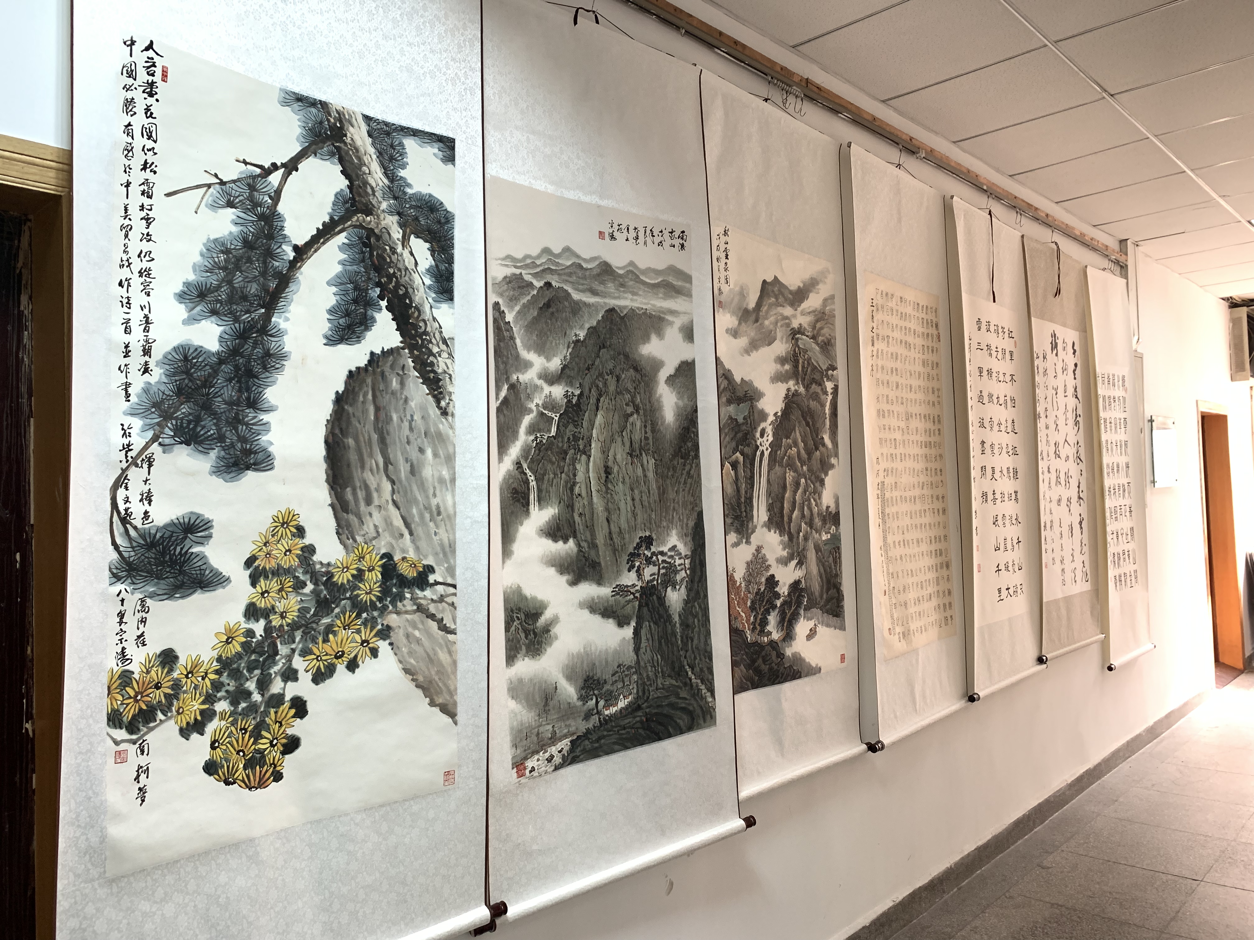 楼道里展出了书画社成员的作品,一点一画,体现出老有所为的阳光心态;一山一水,彰显着多才多艺的艺术情操。也让前来参观的人充分感受到老同志们老有所学、老有所乐、老有所为的独特魅力。