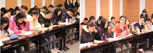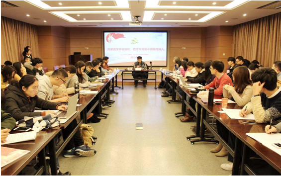 郑教授认为,“改革开放是中国的第二次革命”,并从目的、方法等多方面阐述了其特点。郑教授指出:改革开放的40年,也是中国特色社会主义道路形成的40年,改革开放是对社会主义制度的完善和发展,是为了更好地体现社会主义制度解放生产力、发展生产力的优越性。郑教授还以“改革永远在路上”为切入点,强调了将改革开放不断推向深入的重要性。他从教育体制和医疗体系等多方面分享了自己对改革开放的看法,告诫在座的学生党员要认真学习习近平新时代改革开放思想,坚定信心,坚持改革开放不动摇。在专题讲座期间,学生党员们表现出极大的兴趣,倾听的同时认真做笔记。