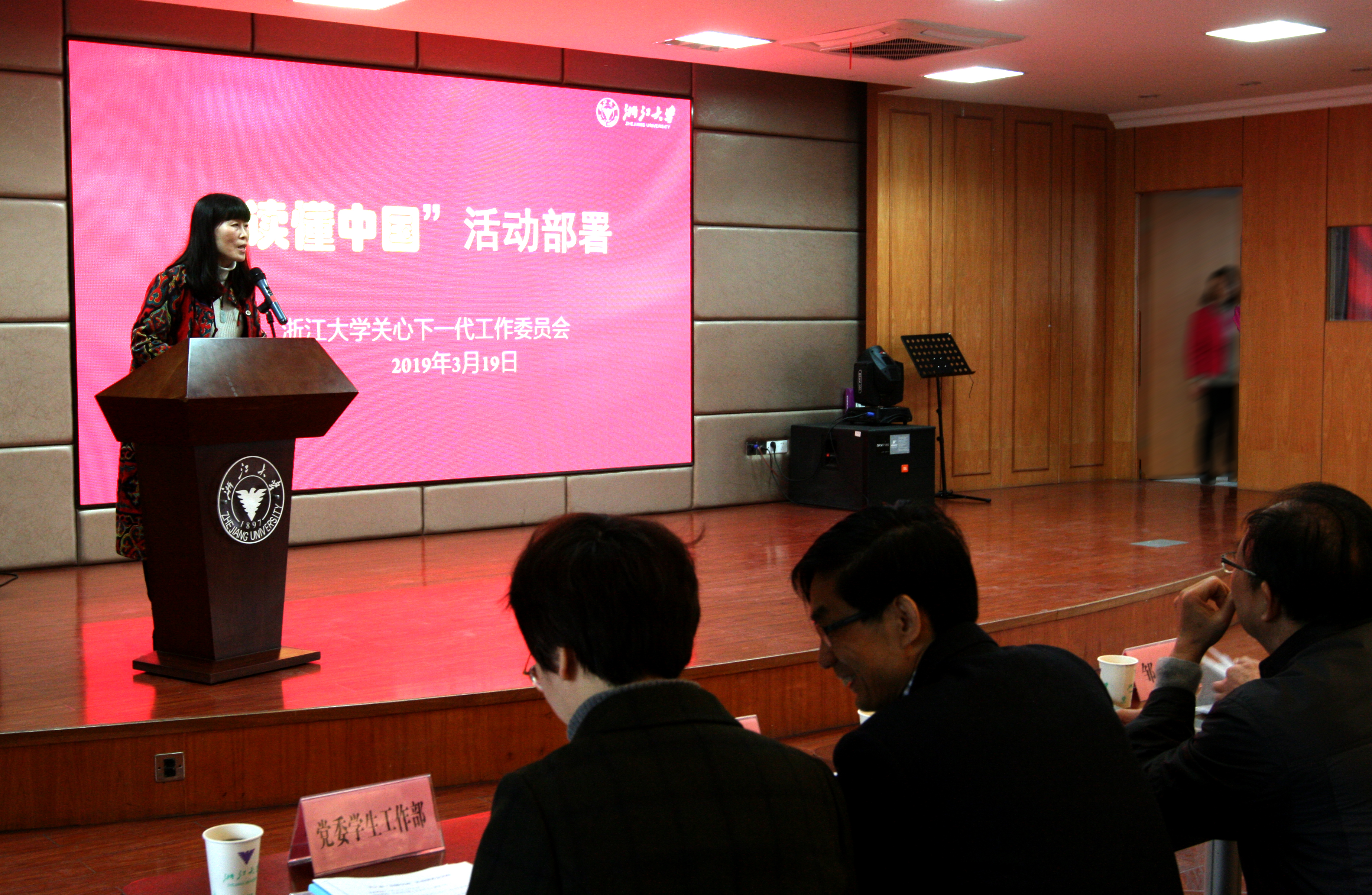为深入贯彻落实党的十九大精神和全国教育大会精神,以立德树人为根本任务,根据教育部关工委《关于全面开展“读懂中国”活动的通知》,3月19日,浙江大学关工委召开“读懂中国”活动部署会。校党委副书记、副校长、关工委主任张宏建出席会议并讲话,校关工委班子成员、各院系关工委负责人、校关工委副秘书长单位负责人、离休党工委、离退休工作处全体负责人、关工委求是宣讲团成员等110多人参加会议。离休党工委书记、离退休工作处处长王东主持会议。