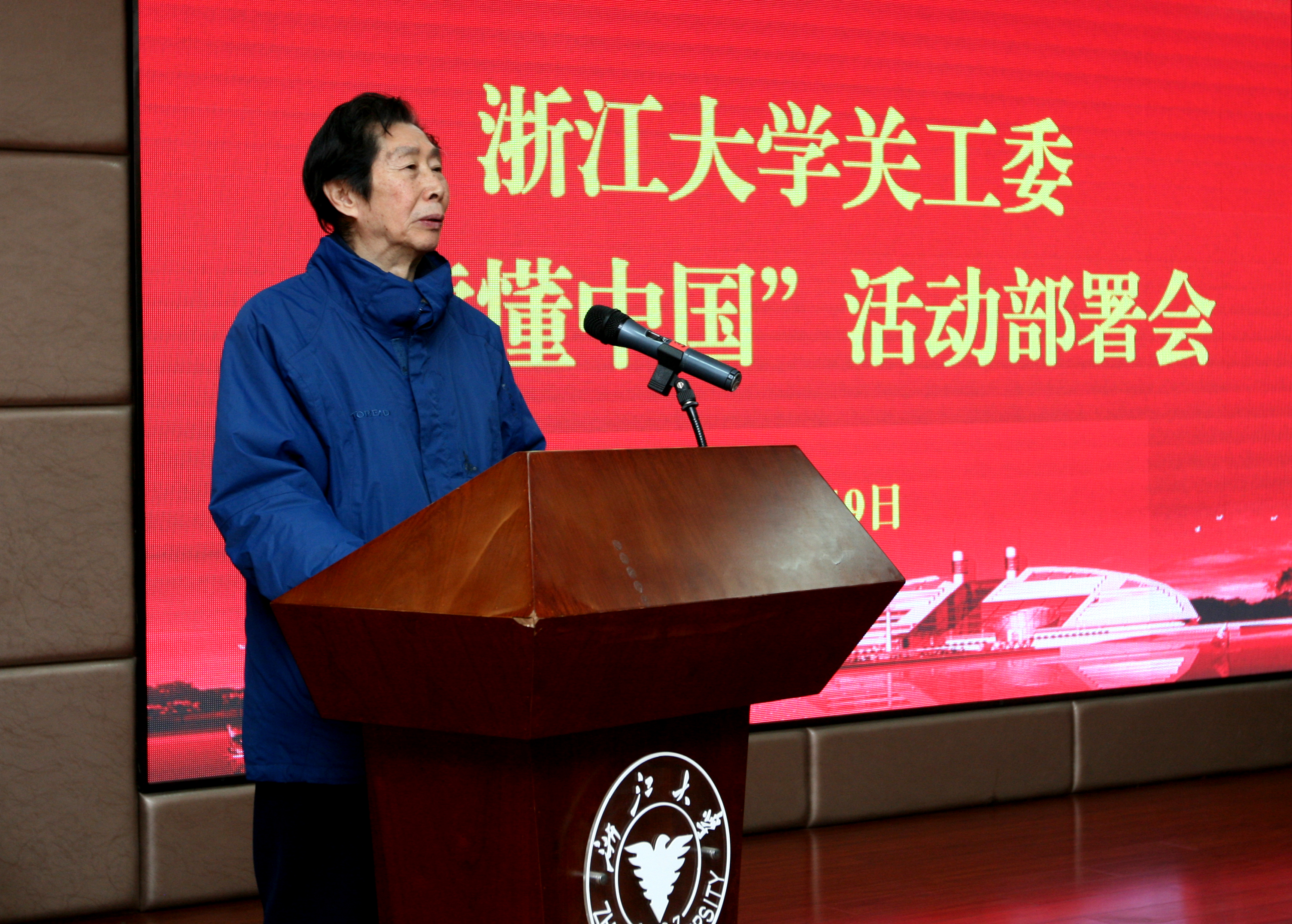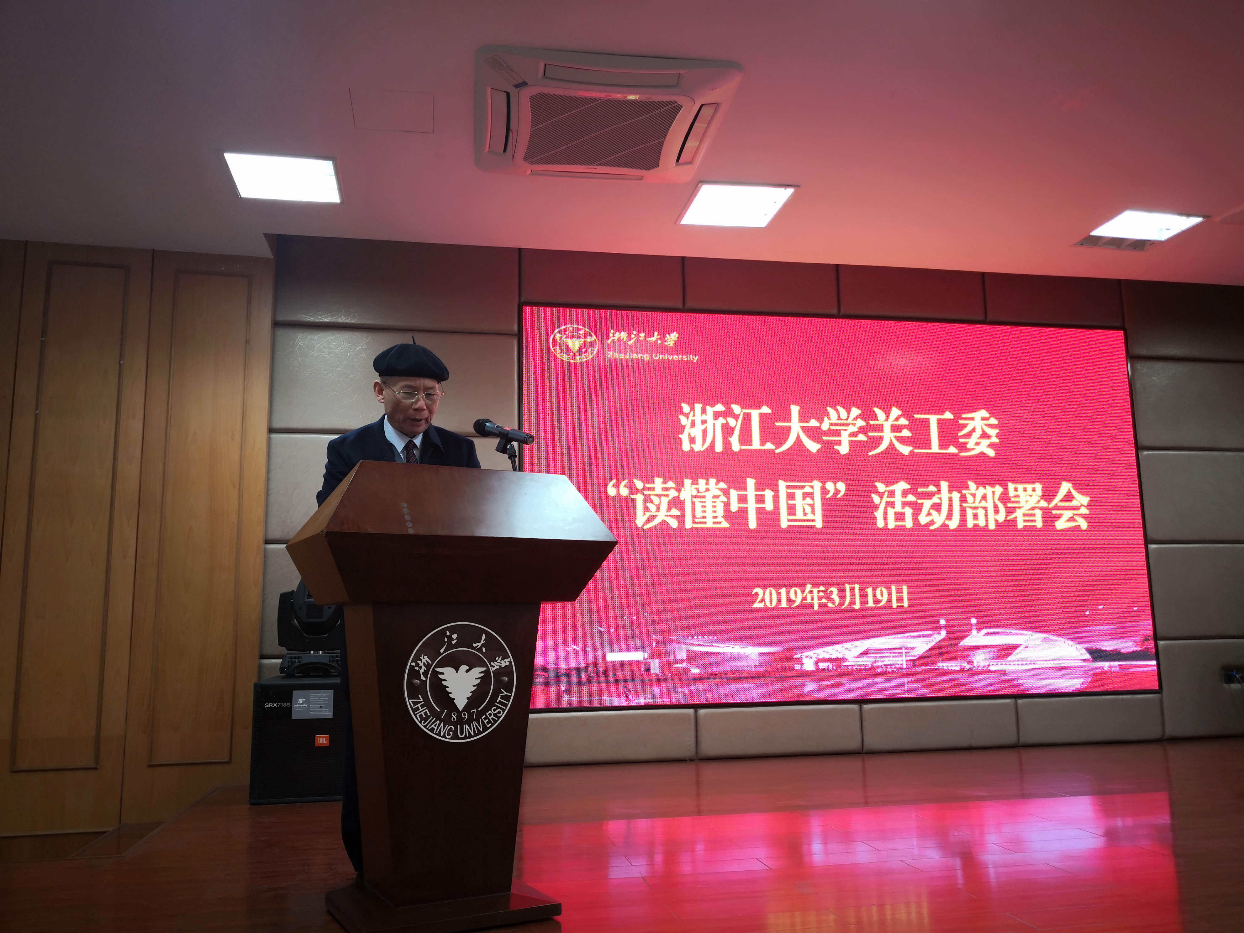 校关工委顾问邹先定作了动员讲话,他谈到作为宣讲团成员的感受,以及自己理解的“五老”的责任和感悟,并满怀深情地回忆了当年杭州解放的经历,感慨党的伟大,并阐明了在青年一代开展“读懂中国”活动的必要性。