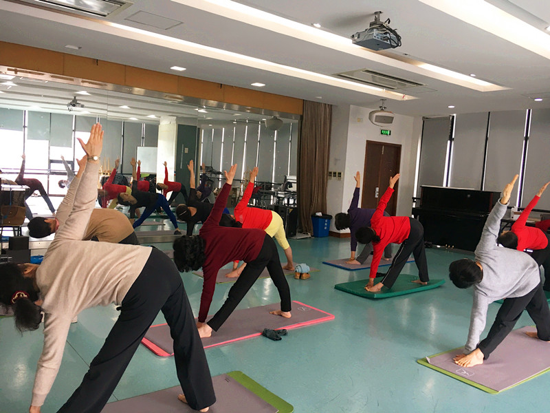 老年瑜伽,你也可以拥有。瑜伽与年龄无关,只要你想练,什么时候开始都不算晚。首期瑜伽班中就有初次练习者,虽然动作不够标准,但在瑜伽老师白音的悉心指导下,仍旧伸展地有模有样。在舒缓的音乐中,学员们调整自己的呼吸,缓缓地打开双臂,充分体验瑜伽动作对身体的拉伸和放松,享受着运动的快乐,达到健身锻炼效果。课后,大家意犹未尽,纷纷围在老师身边讨论动作要领、交流练习体会。
