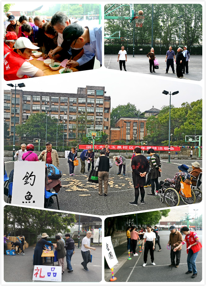 本次运动会开设了篮球定点投篮、飞镖掷准、夹掸子、套圈、钓鱼五个比赛项目,集娱乐健身于一体,深受老同志喜欢,赛场上老同志们精神饱满,斗志昂扬。现场特邀浙江老年报银龄互助志愿者团队、校区老年体协、浙大后勤集团商贸公司、物业服务中心玉泉分中心、水电保障中心玉泉分中心和校医院等单位为老同志带来水电免费维修、“天堂伞”免费维修、眼镜的清洗修、免费理发按摩、医疗保健、花卉养殖和养老咨询等现场服务,通过精心的组织安排,想老同志之所想、急老同志之所急,精准做好服务保障工作。