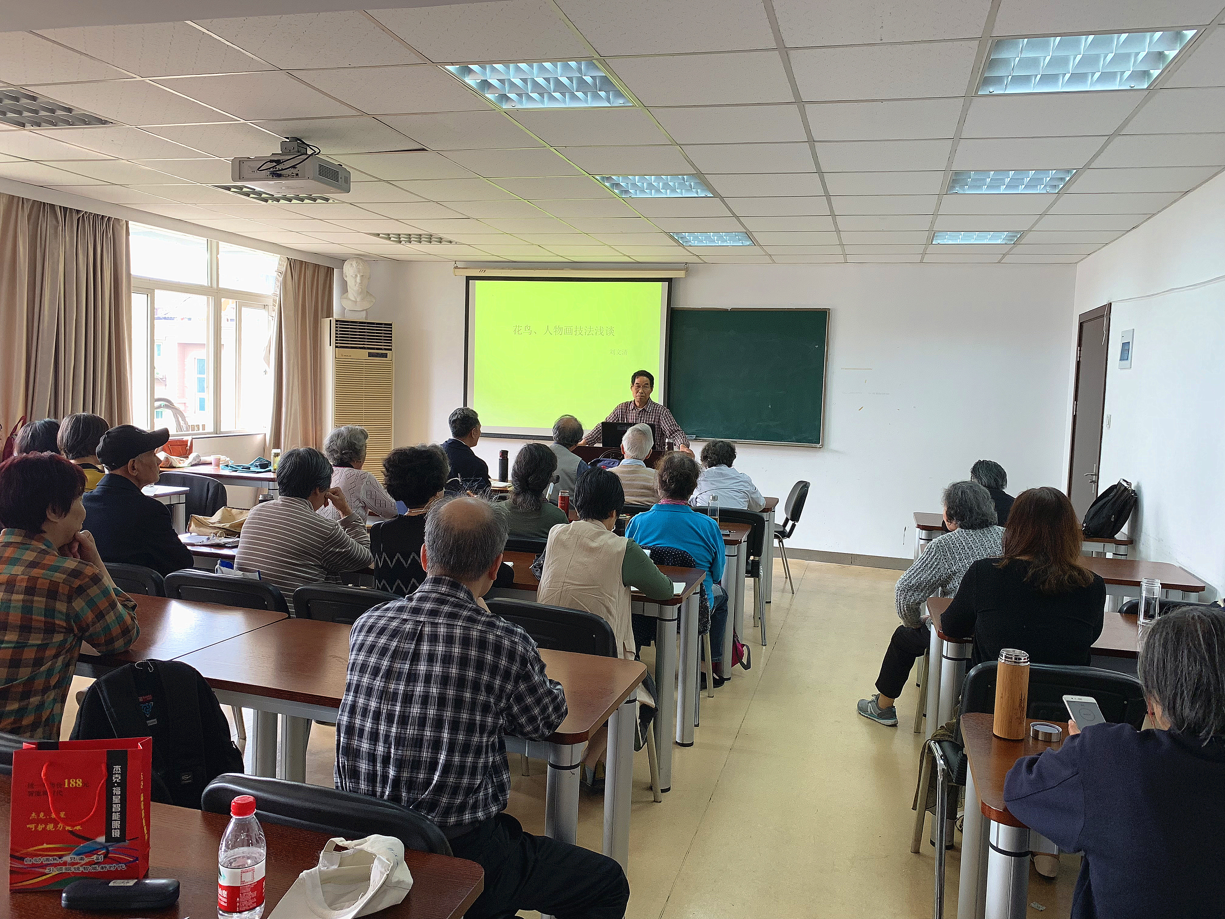 整场讲座座无虚席,次序井然,参会者不时地记着笔记,表示倍感珍惜这难得的学习机会。刘文清教授的讲座和现场点评使他们受益匪浅,不仅是对花鸟、人物画的技法有了系统的了解,而且对国画艺术的理解水平也有了很大的提高。最后他们对玉泉校区老年书画社的辛勤付出和我校离退休处为老服务工作的关心和支持表示衷心的感谢!