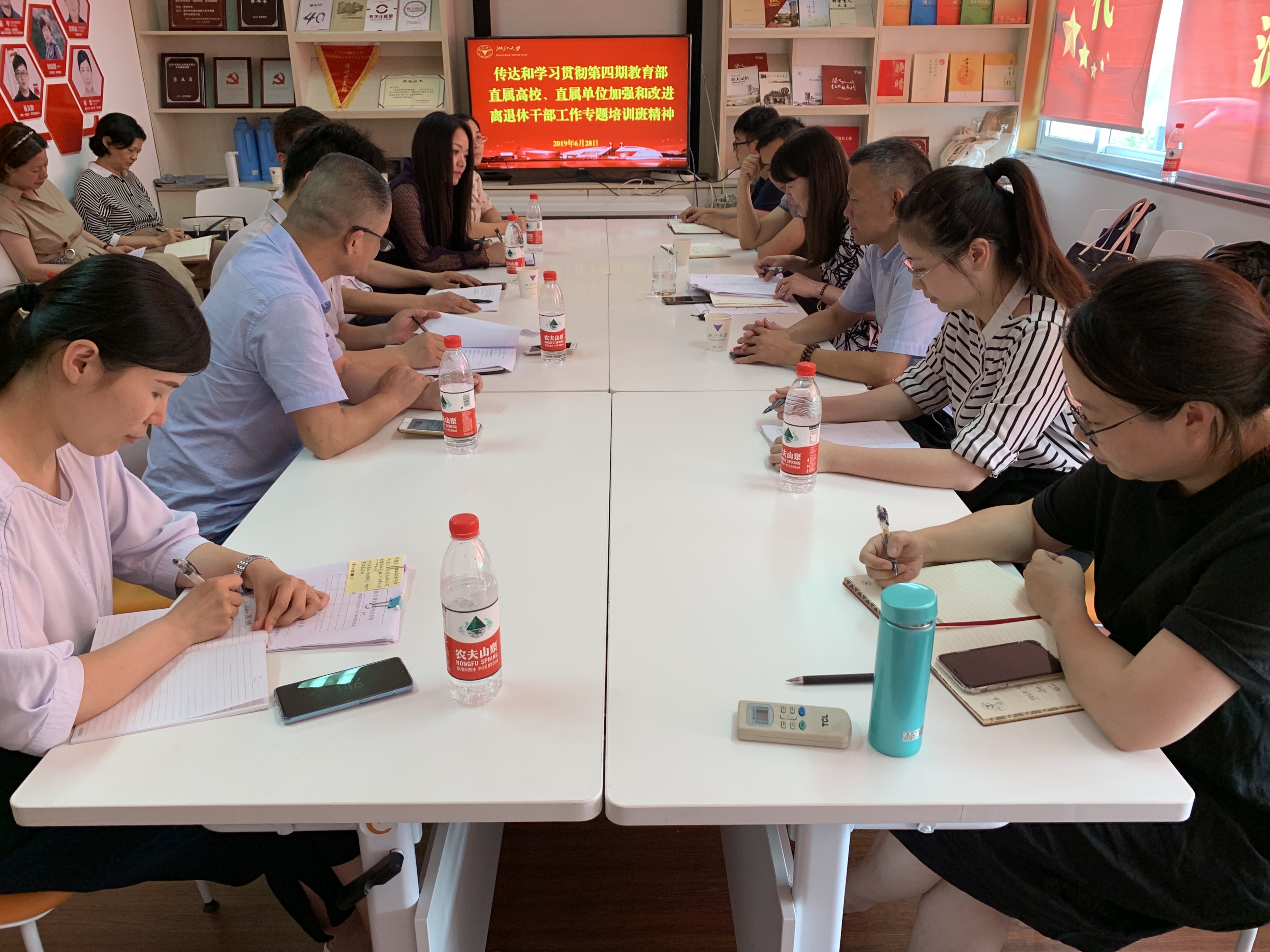 6月11日上午,离休党工委、离退休工作处召开2019年第11次党政联席会议,会议具体传达了教育部直属高校、直属单位加强和改进离退休干部工作专题培训班(第4期)精神并印发了相关会议资料。6月28日下午,离退休工作处召开全体在职职工大会,对专题培训班精神做进一步传达和学习贯彻。