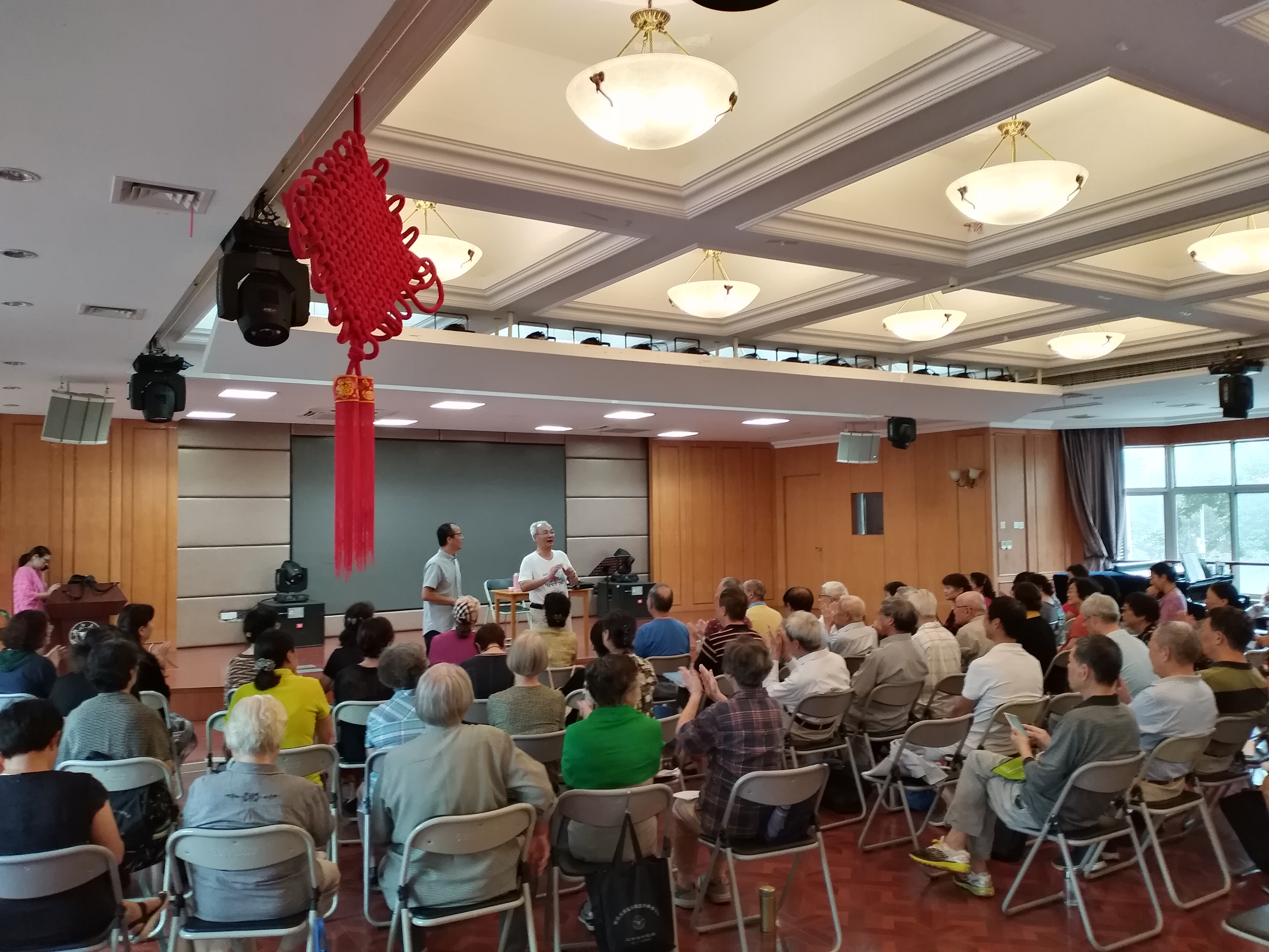 徐同团长代表全体团员,感谢学校二十年来对老年合唱团的关心、帮助和支持。“团庆演唱会”是合唱团二十年合唱艺术实践成果的集中汇报,任务重、要求高,承前启后意义深远。目前,演唱会所有节目,特别是四首合唱曲和二首无伴奏合唱曲,都在加紧排练。他希望全体团员一鼓作气,再接再厉,精益求精,排练时专心致志,在家时主动温习,力求熟悉旋律和歌词,把握节奏和气息,争取在正式演出时有出色的表现,向新中国七十华诞赞美祝福,为浙大老年合唱团建团二十周年争光添彩!