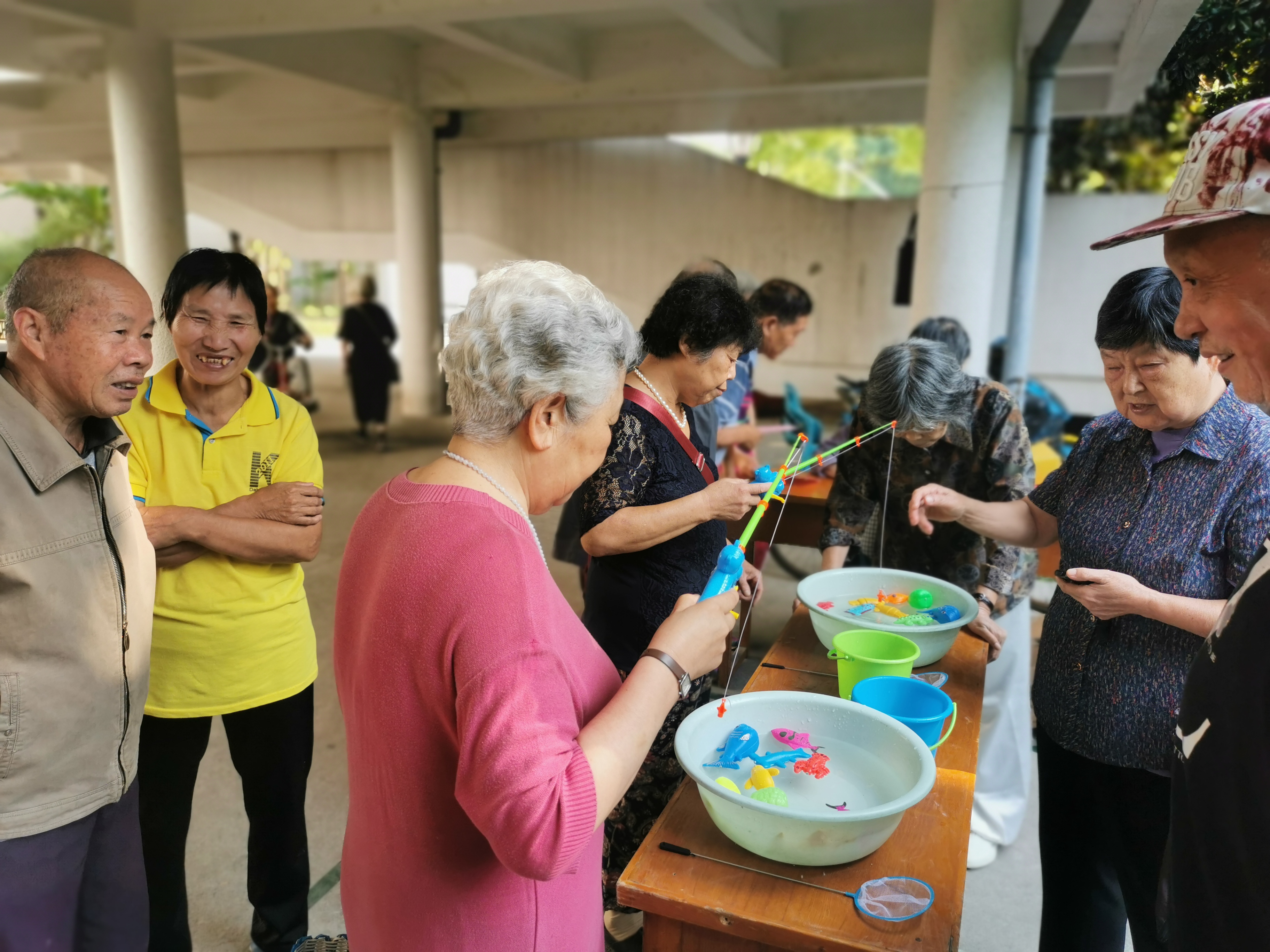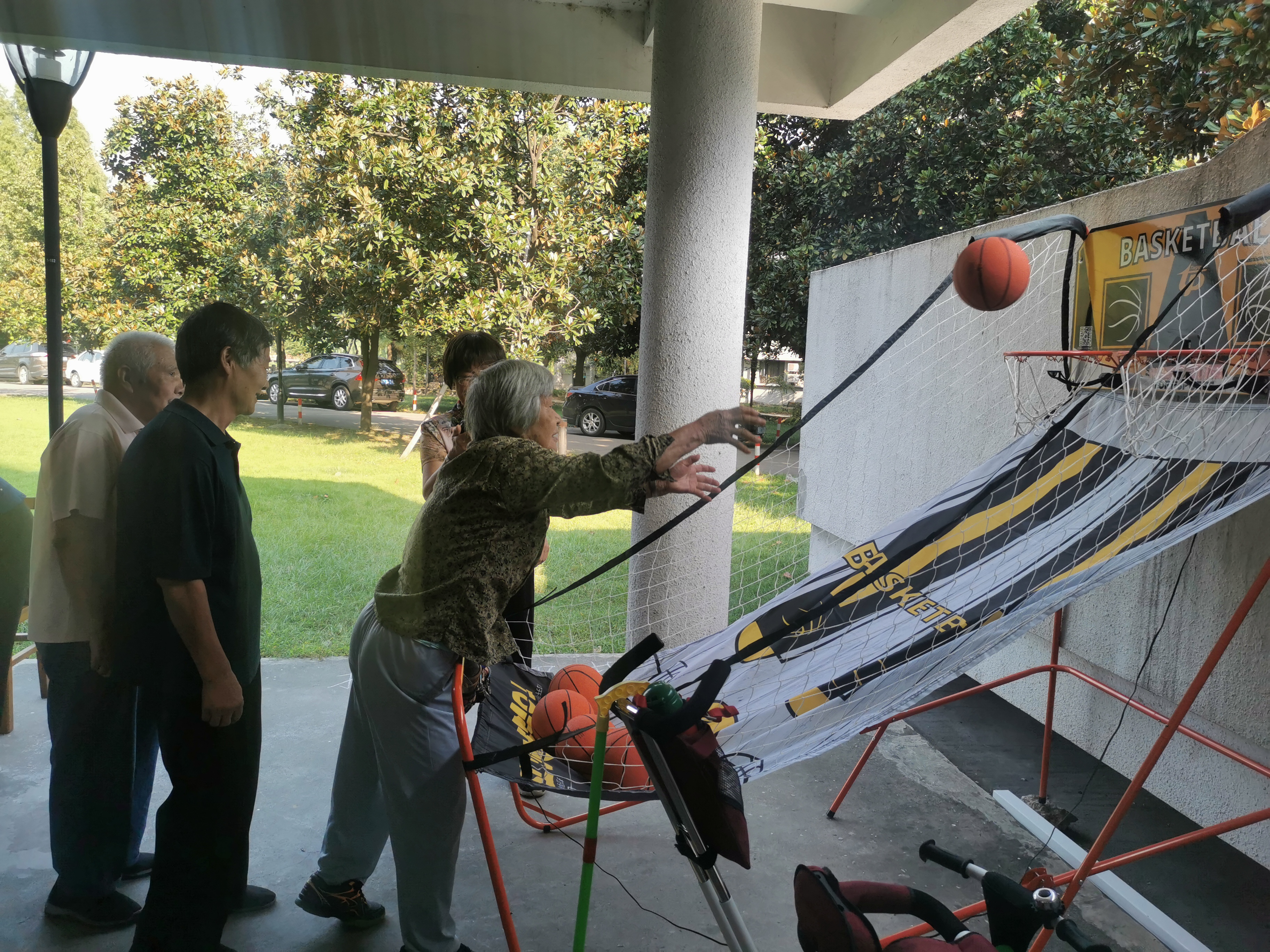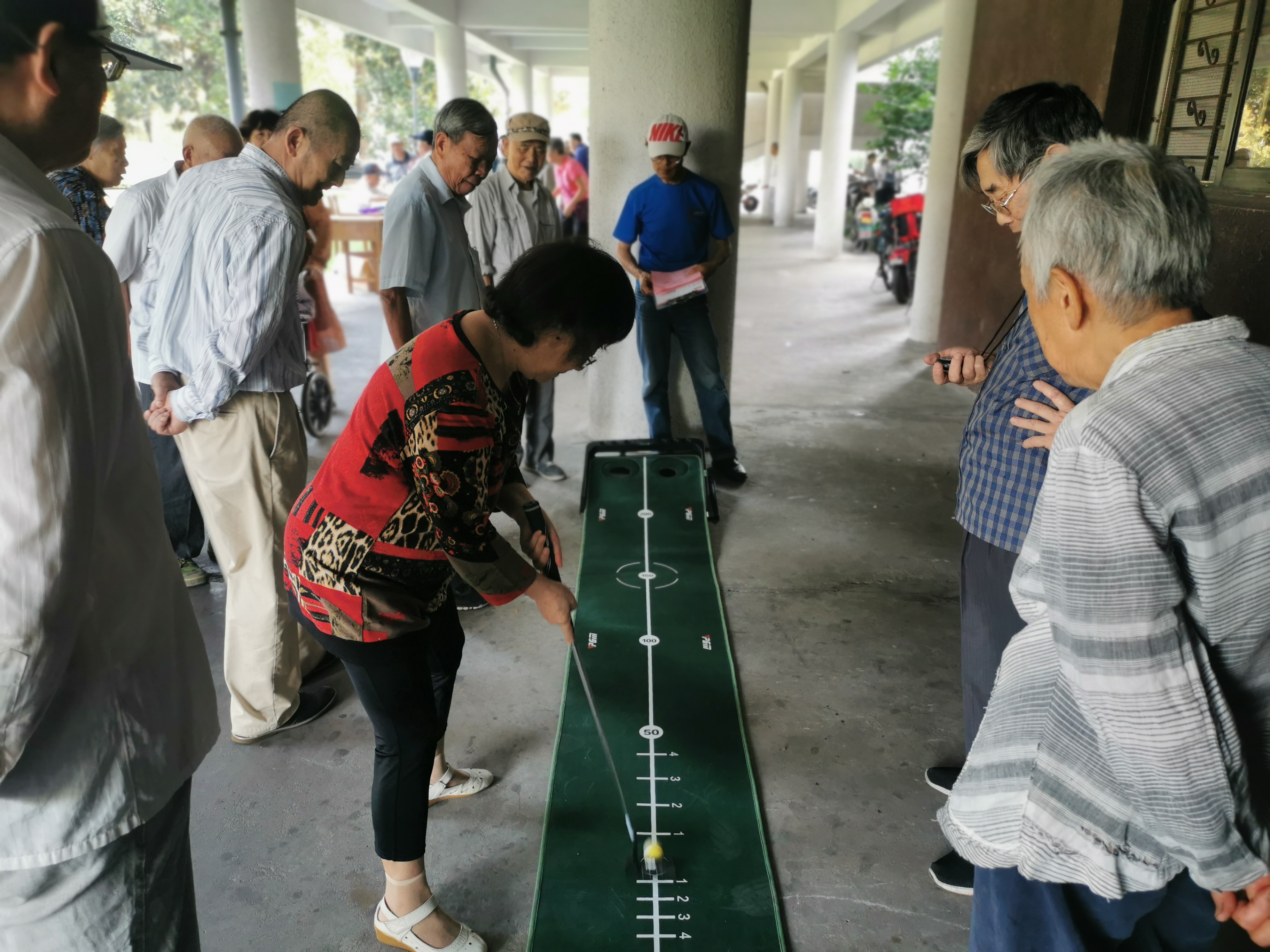 老年人趣味运动会旨在“我运动、我健康、我快乐”,本次运动会除开设飞镖掷准、皮球倒靶、夹掸子、套圈、钓鱼等传统比赛项目外,还新设篮球投篮机投篮、桌上冰壶、迷你高尔夫、一鼓作气等新的趣味比赛项目。这些项目集娱乐性、益智性与健身性于一体,深受老同志喜欢。“篮球投篮机投篮”最受老人们喜欢,考验选手们在规定时间内反应敏捷、手眼协调的技巧,“迷你高尔夫”参赛者们挥杆展现了气定神闲的耐心与沉着,“一鼓作气”吸引了许多兴致昂扬的老同志前来吹吹气、练练手。他们专业的姿势、蓬勃的热情让人难以想象他们已是耄耋之年甚至鲐背之年的老人,99高龄的的沈大妈也坐着轮椅来到活动现场参与趣味项目。