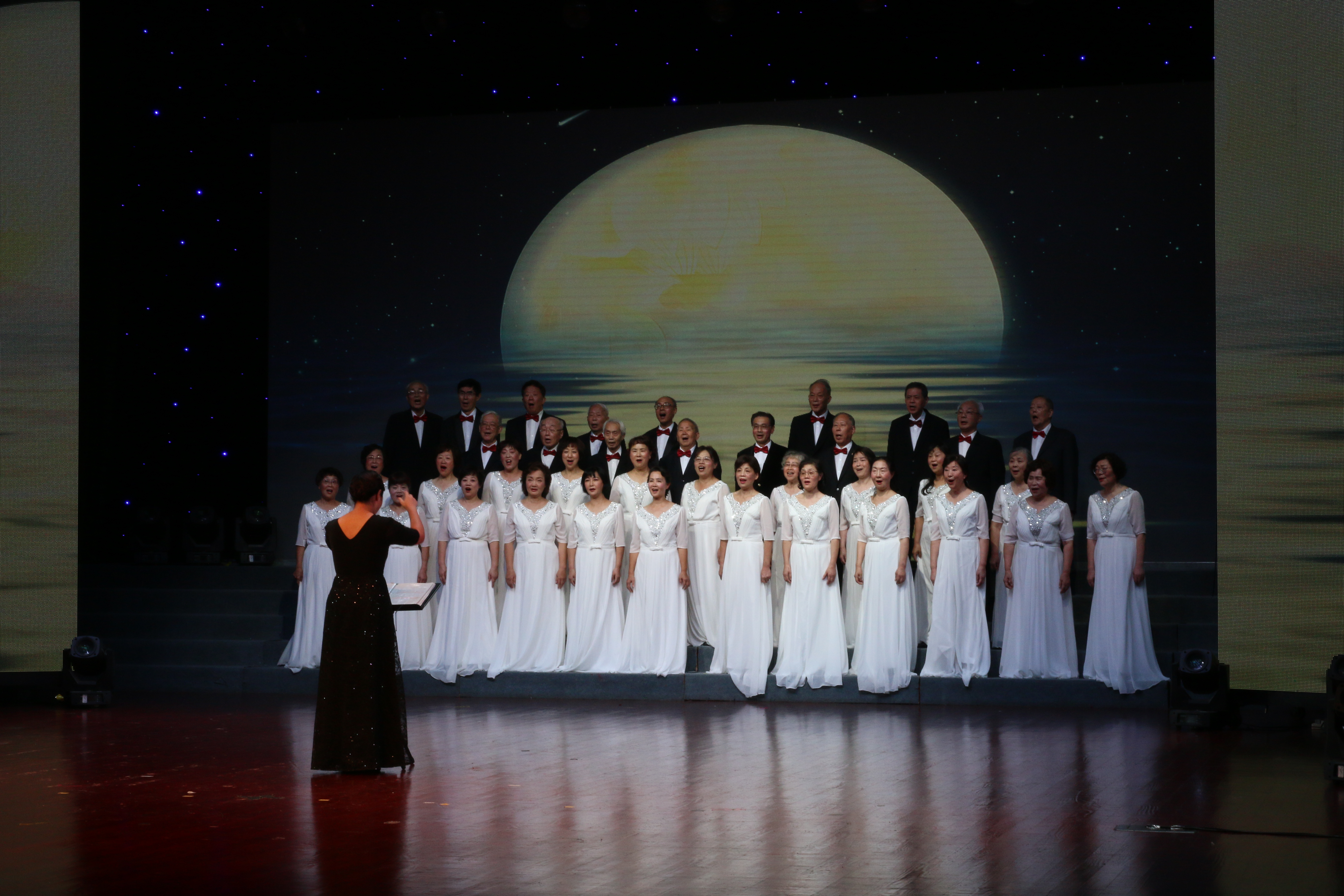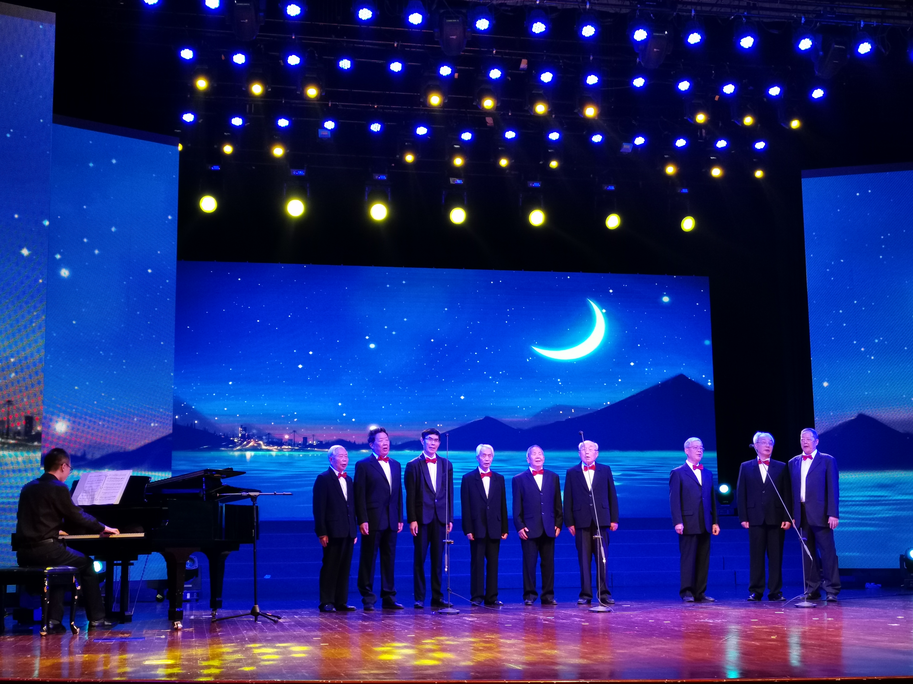求是情怀,岁月如歌。演唱会在《浙江大学校歌》熟悉而亲切的旋律中拉开帷幕。作为演唱会主场,浙江大学老年合唱团倾情表演了合唱《今天是你的生日,中国》《去一个美丽的地方》《赋得古原草送别》《在希望的田野上》、无伴奏合唱《半个月亮爬上来》《送别》、情景诗朗诵《老年是秋天里的一首诗》、男声小组唱《海港之夜》《乡间小路》、女声小组唱《我为共产主义把青春贡献》等精彩节目。老同志们昂扬的精神面貌和出色的歌舞表演,博得了观众的阵阵掌声。由合唱团八十岁以上高龄、二十年团龄的老同志表演的男女声小组唱,更是赢得了满堂喝彩。合唱团徐同团长在演唱会致辞中动情地说,这些老同志在工作岗位上是业务骨干,在合唱团里是中坚力量,二十年来他们不顾年事已高,坚持参加排练和演出,在合唱艺术上孜孜以求,为合唱团的建设发展做出了突出贡献,展现了老同志初心不易、老当益壮的时代精神风貌,为年轻团员树立了学习的榜样。