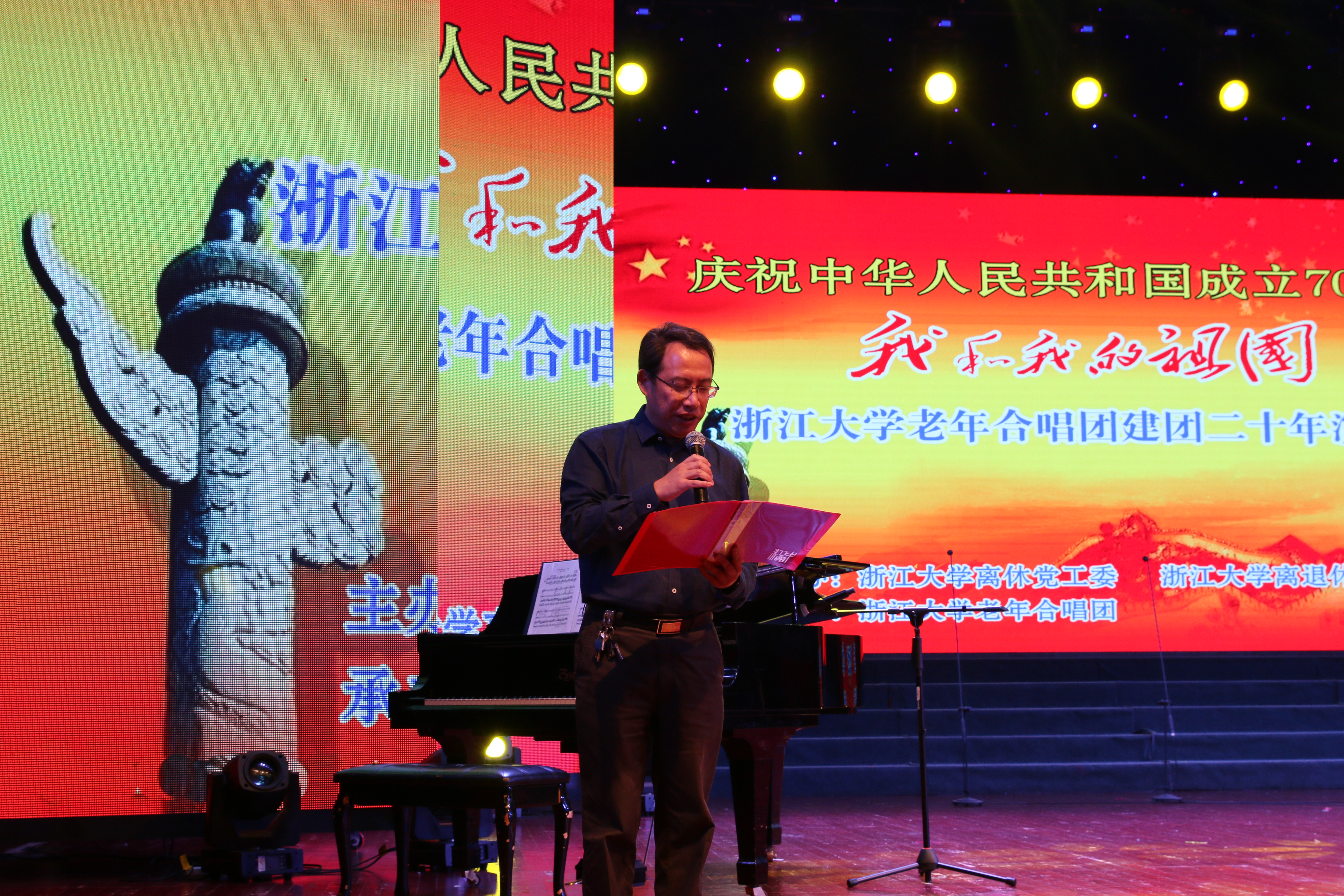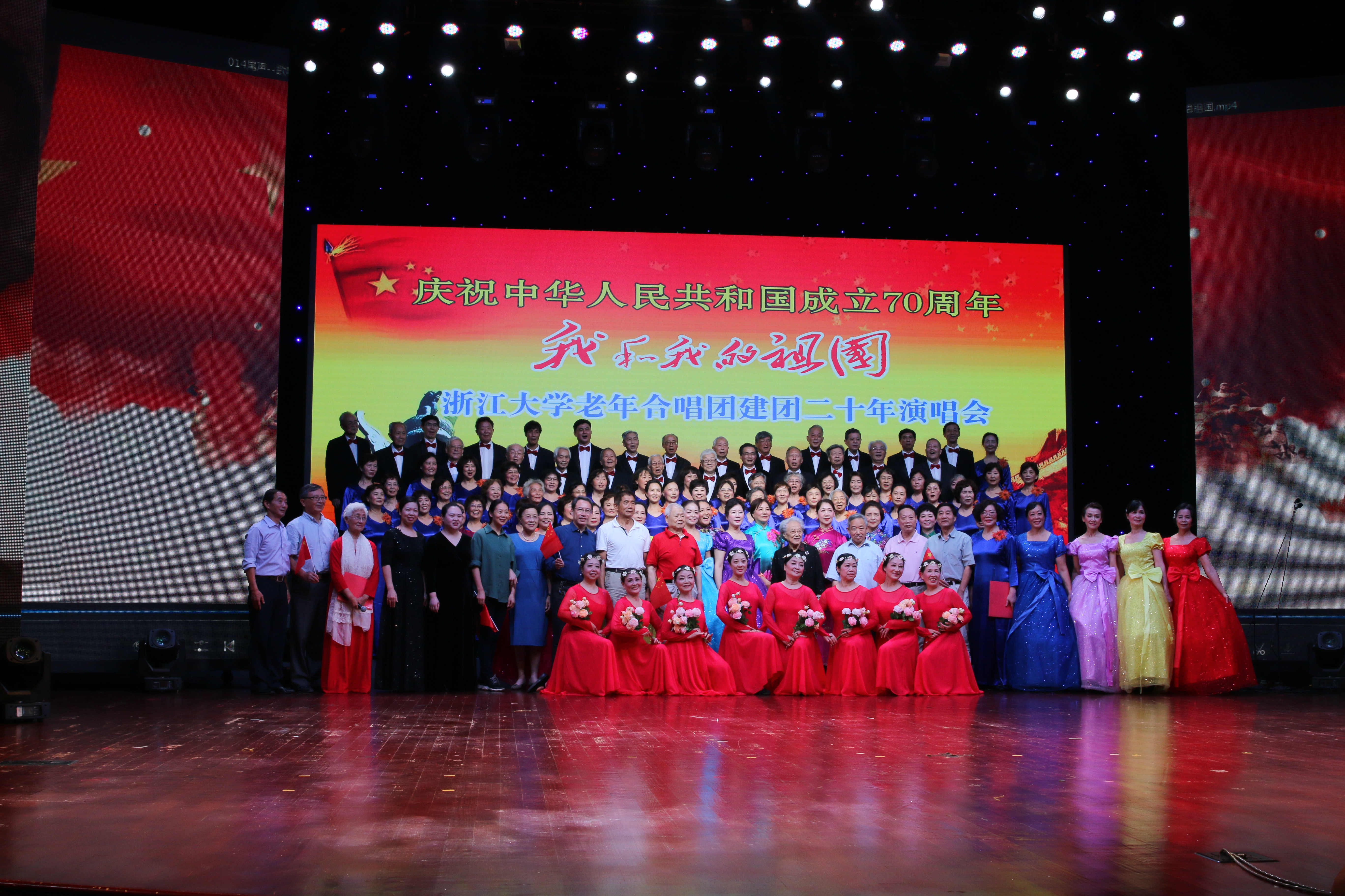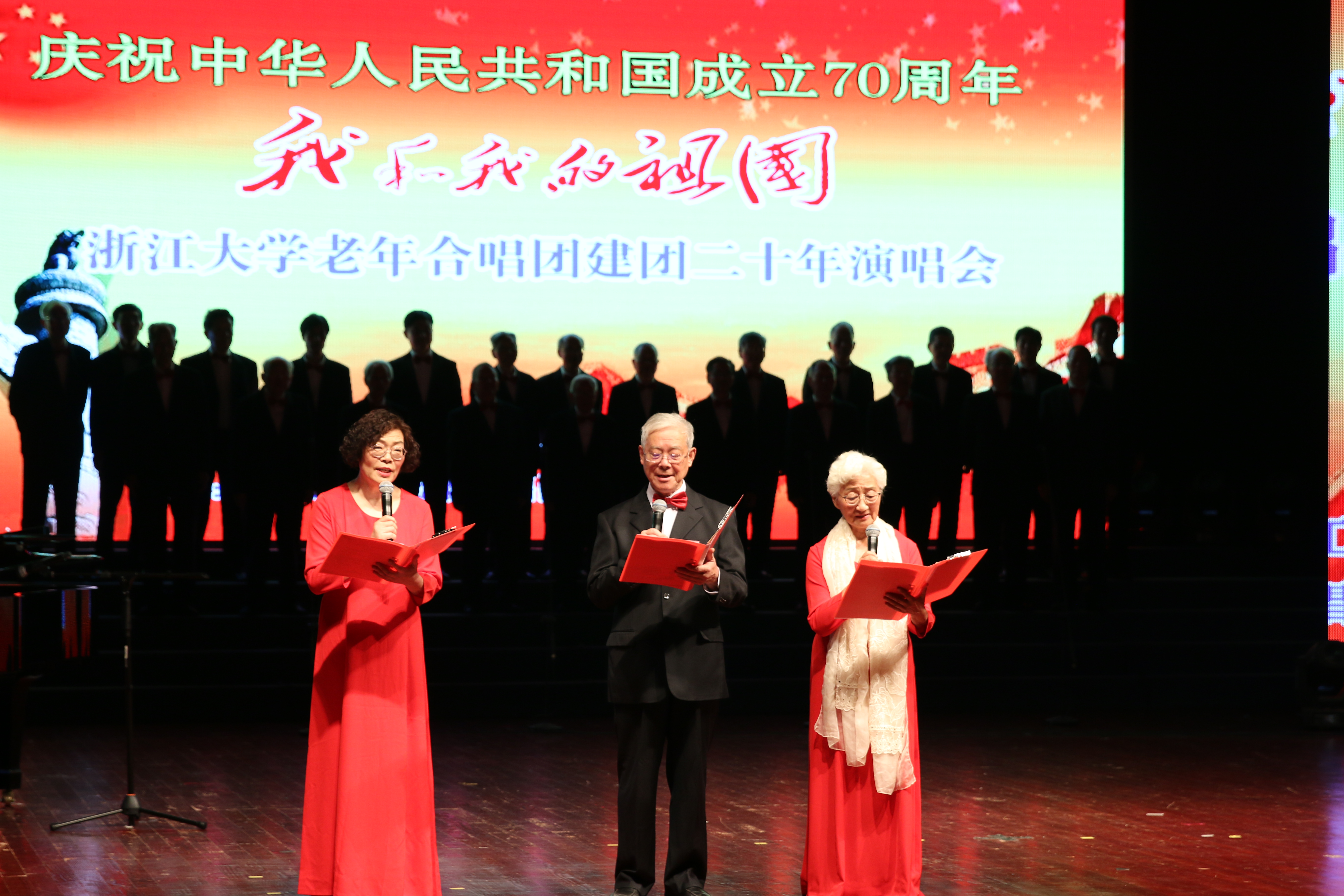 “五星红旗迎风飘扬,胜利歌声多么嘹亮,歌唱我们亲爱的祖国,从今走向繁荣富强……”,9月26日下午,“我和我的祖国” 浙江大学老年合唱团建团二十周年演唱会在浙江大学玉泉校区永谦剧场隆重举行。老领导、老同志,师生员工代表和校内外嘉宾,同台联袂,载歌载舞,欢庆新中国70华诞,祝贺校老年合唱团建团二十周年。