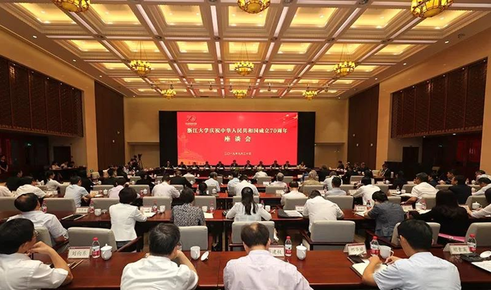 9月30日上午,在喜迎新中国七十华诞之际,浙江大学在紫金港校区举行庆祝中华人民共和国成立70周年座谈会。师生代表相聚求是大讲堂,畅叙祖国走过的不平凡发展道路,回顾浙江大学与国家民族同频共振的办学历程,表达对伟大祖国母亲的深深祝福、对学校建设中国特色世界一流大学的信心和期待。