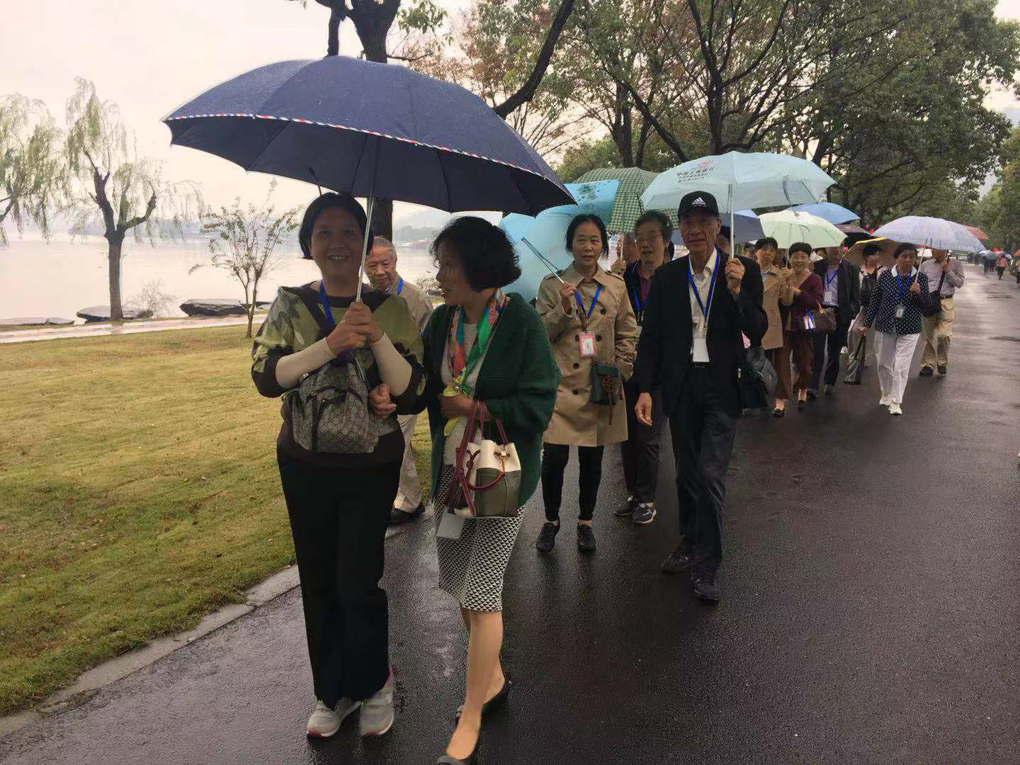10月17日上午,细雨微�,远山淡影,湖滨退休教职工秋季“走、看、促”活动来到宁波东钱湖。