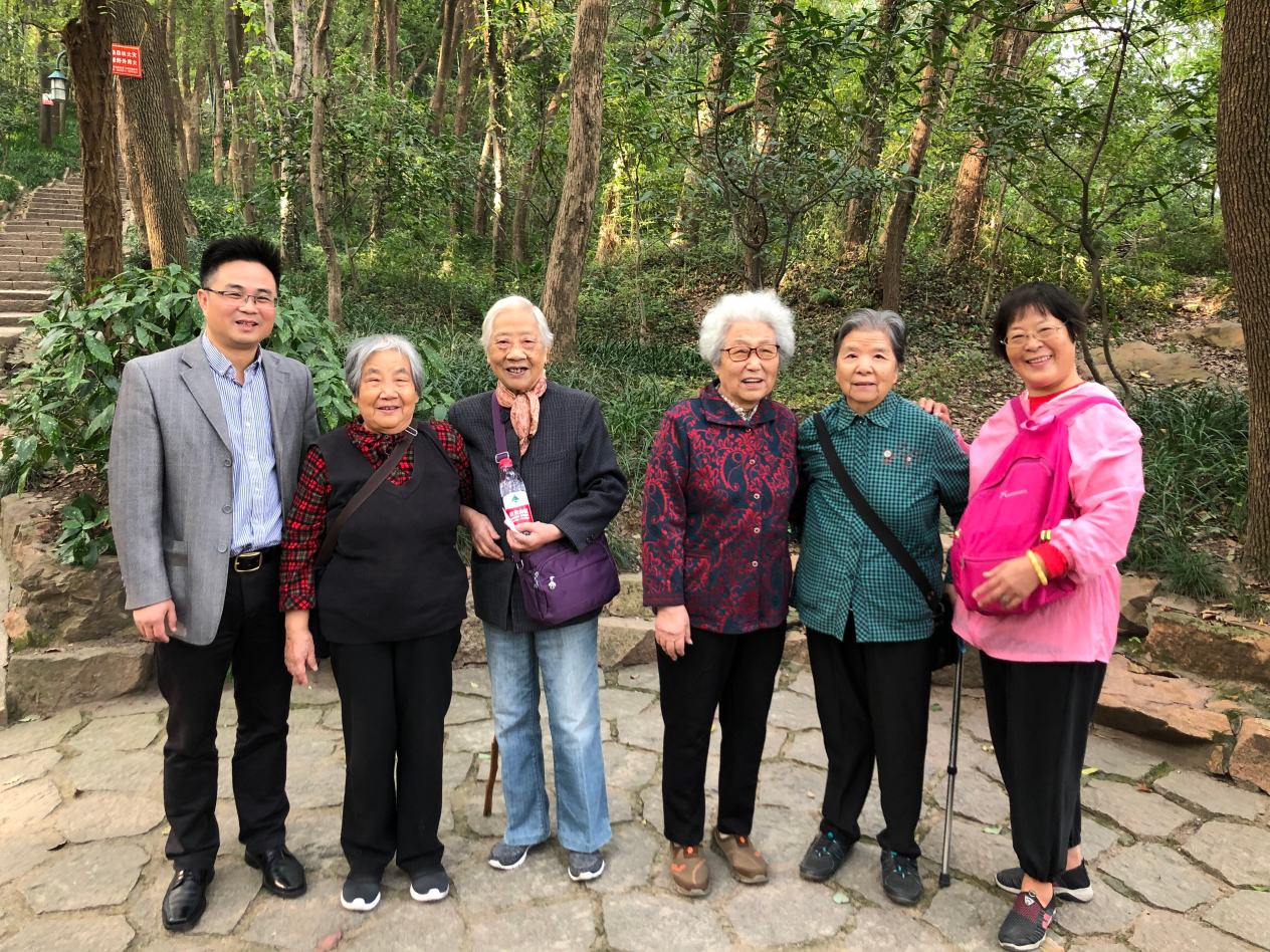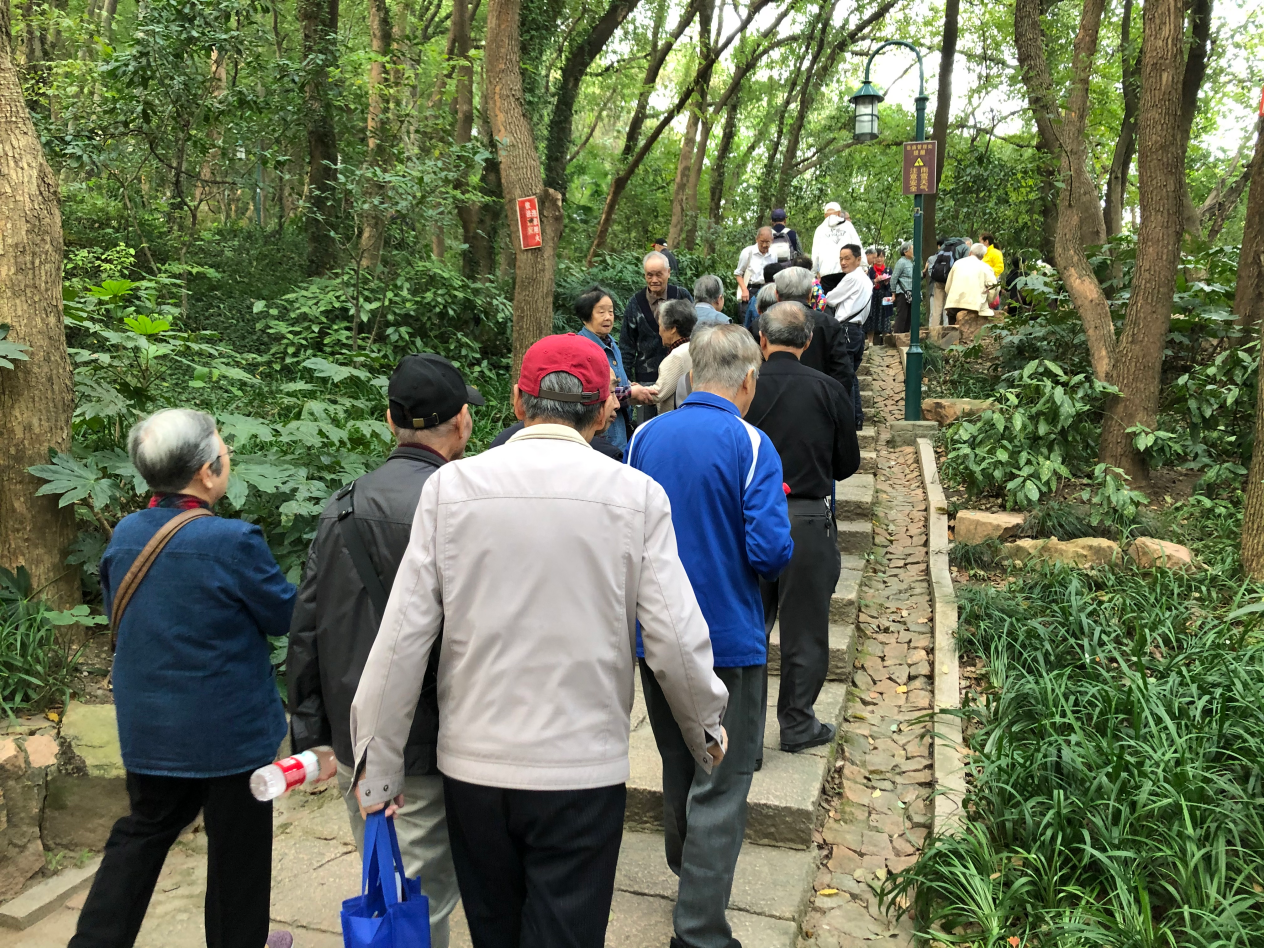 清晨的初阳台,古木苍翠,鸟鸣山幽。老同志们早早相聚在宝石山下,老友相见分外亲切。大家一边沿着青石山道拾级而上,一边话家常、聊近况,现场欢声笑语气氛热烈,老同志脸上纷纷洋溢着轻松欢快的笑容。