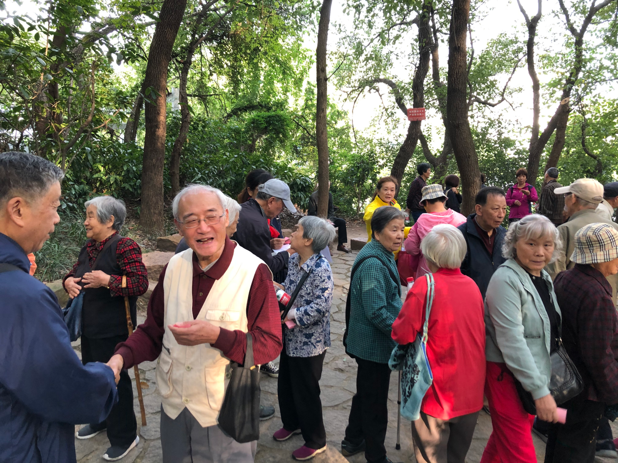 10月18日上午,天高云淡、秋风习习,西溪2019年老年节登山活动在宝石山初阳台举行,800多位西溪退休老同志参与其中。