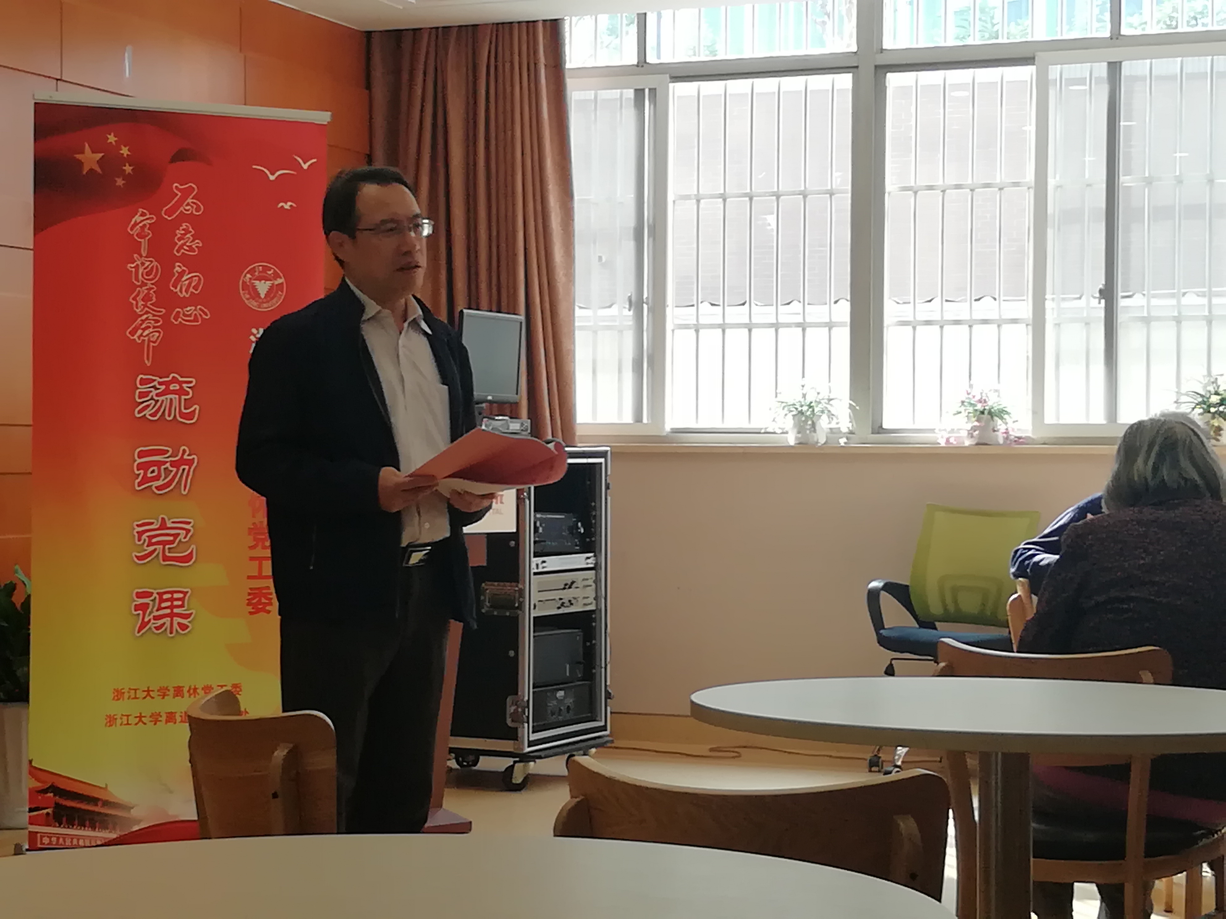 为贯彻落实“不忘初心、牢记使命”主题教育的统一部署,推动学习贯彻习近平新时代中国特色社会主义思想往深里走、往心里走、往实里走,10月22日,浙江大学离休党工委班子成员深入天目山医院、浙江医院望江山院区,开展送学上门活动,通过“流动党课”创新学习形式,有效助力离休党员学习教育,筑牢党员思想的“基石”。