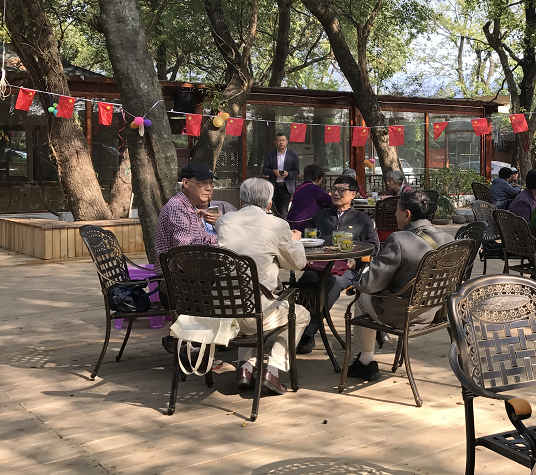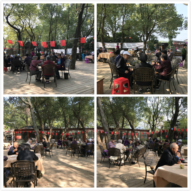 10月24日上午,湖滨退休教职工秋季“走、看、促”活动来到杭州余杭瓶窑鱼佬大生态农庄,组织老同志喝茶活动。