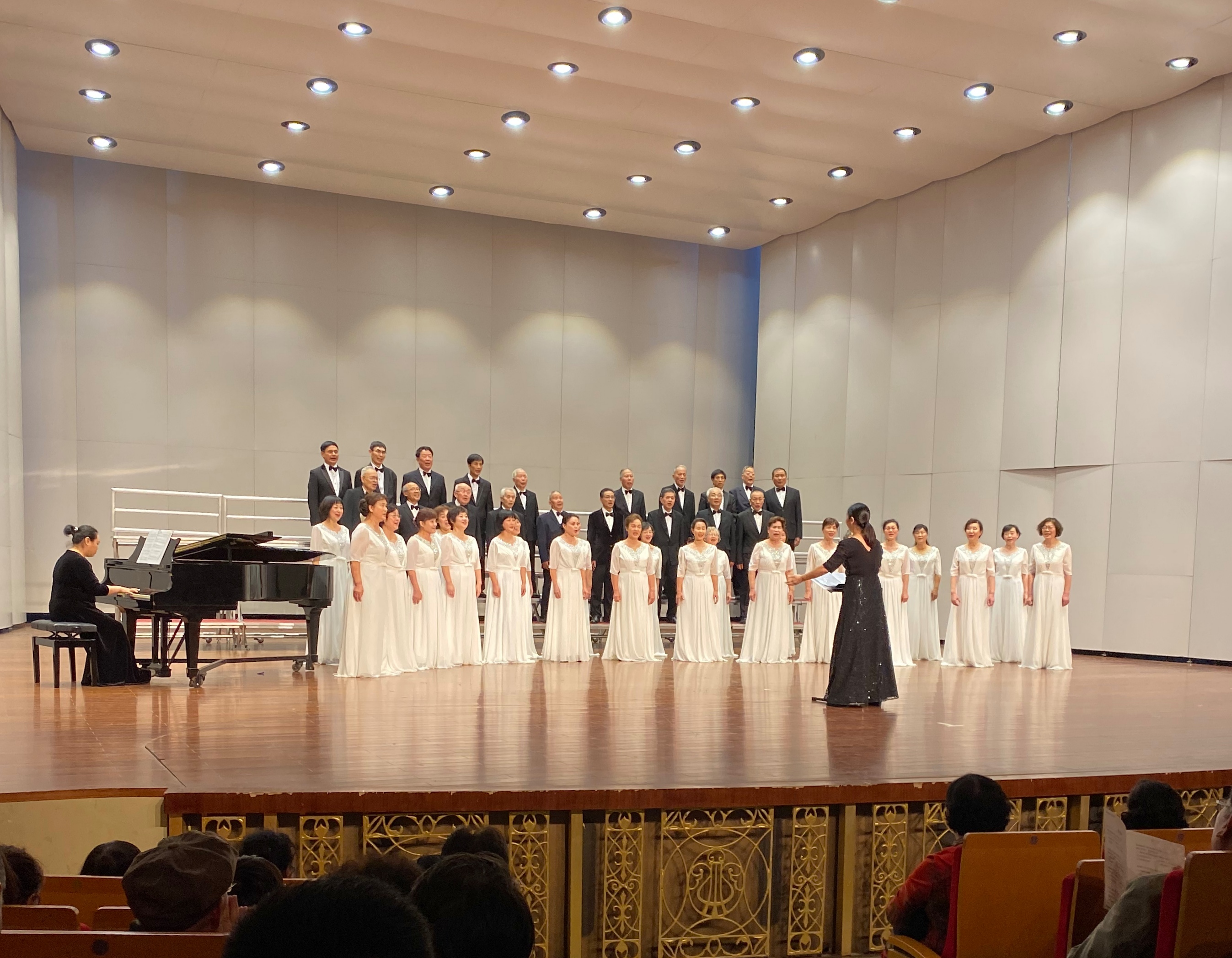 浙江音乐厅是本省首座可不借助电扩声举办音乐会的专业表演场所,配有升降乐池和16块升降舞台,设有国内首创的活动墙体,能以镜框式和鞋盒式两种舞台样式承办演艺活动。在专业音乐厅演出,对于有着二十年历史的浙江大学老年合唱团来说,无疑是一次专业的检验和特殊的考验,更是一次精彩发挥的难得机会。在所有演职人员的共同努力下,演出最终获得圆满成功,赢得了现场专家和兄弟团队的热情赞扬,展现了浙江大学退休教职工的时代风貌和精神追求。