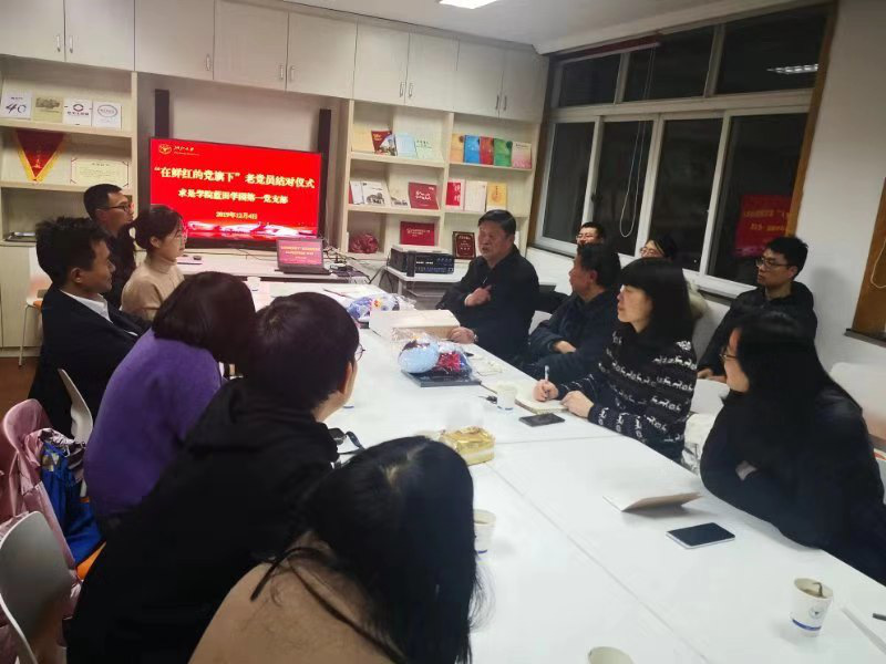 2019年12月4日,玉泉校区教工活动中心406活动室座无虚席,一派喜气洋洋。蓝田学园第一党支部正在这里举行以“我和我的祖国”为主题的老党员与青年党员、学生共话新中国70年的结对活动。离休党工委常务副书记、校关工委秘书长朱征,关工委求是宣讲团庄表中教授和张梦新教授、蓝田学园第一党支部全体党员等参加结对活动。