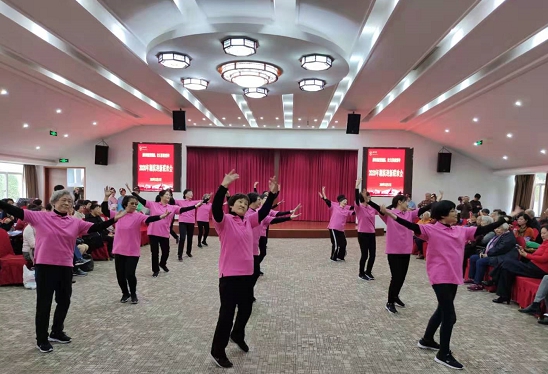 健身队表演的是充满活力的广场舞《歌唱新时代》;