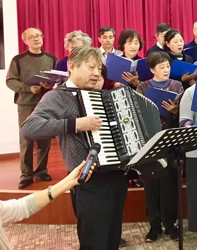 湖滨之声合唱团指导老师卞祖森带来了歌曲《祖国,慈祥的母亲》,