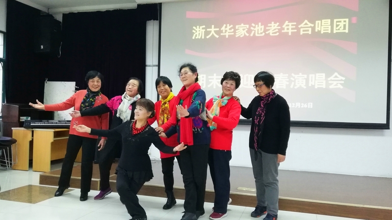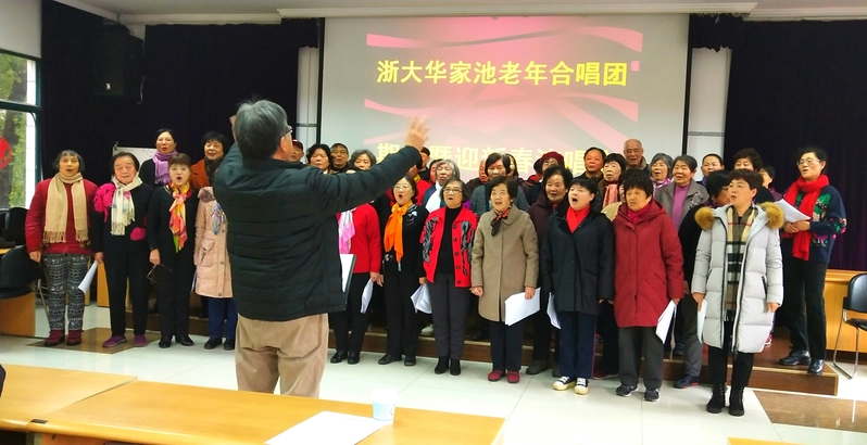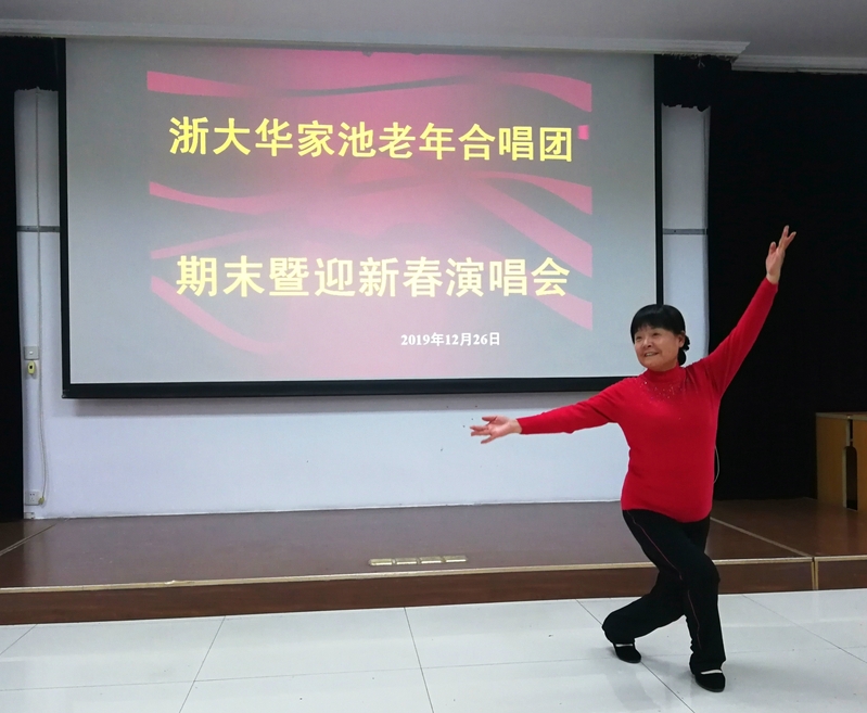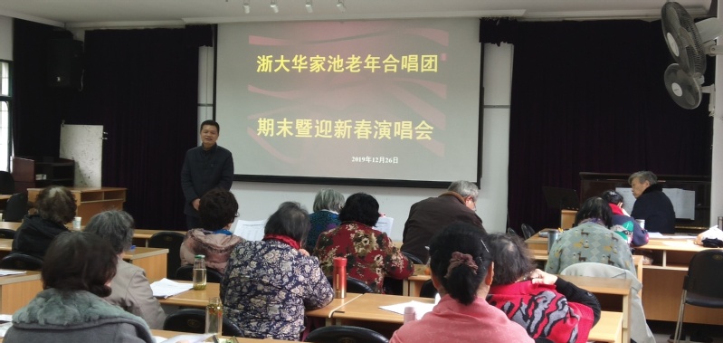 欢歌迎新春,礼赞新时代。12月26日,浙大华家池老年合唱团成员欢聚一堂、载歌载舞,在常青楼三楼多功能厅举办期末暨2020年迎新春演唱会。离退休工作处副处长、离休党工委副书记王剑忠出席活动并讲话。