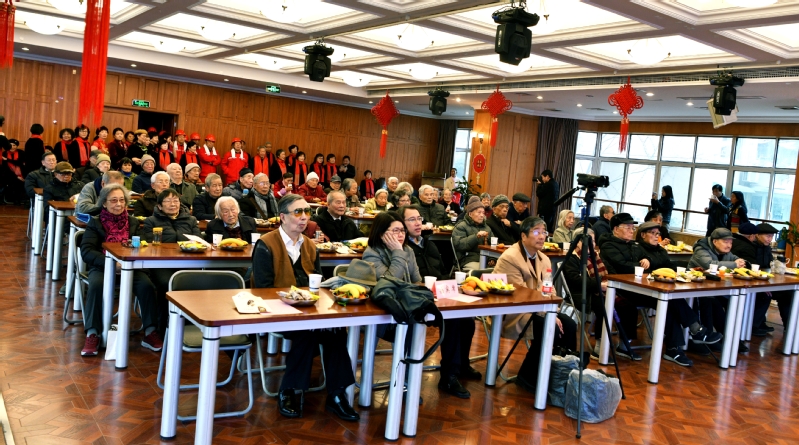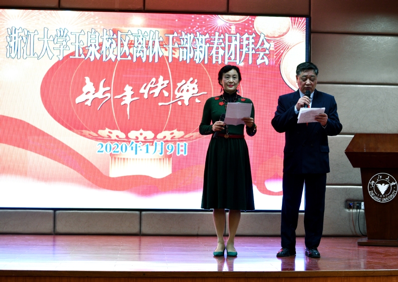 1月9日上午,玉泉校区离休干部2020年新春团拜会在玉泉校区教工活动中心二楼多功能厅举行。40余位离休干部欢聚一堂。离退休工作处处长兼离休党工委书记、党委组织部副部长王东、玉泉校区党工委副书记兼管委会副主任周小萍等参加了团拜会,离退休工作处副处长兼离休党工委副书记、玉泉校区离休党总支书记韩东晖主持团拜会。