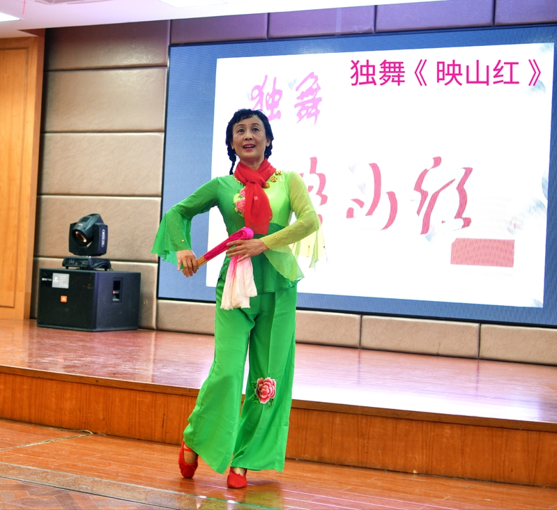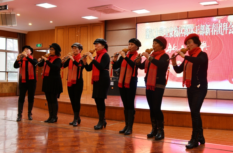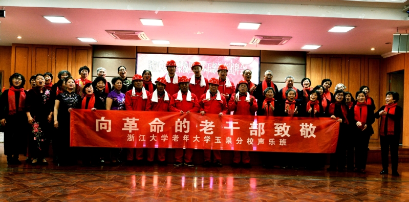浙江大学老年大学玉泉分校声乐班的学员们为老干部精心准备了一台节目。歌曲联唱《祝福祖国》、《我为祖国献石油》、葫芦丝表演《友谊地久天长》、女声二重唱《大海啊故乡》、独舞《映山红》、旗袍秀《梨花颂》等,赢得老干部的阵阵掌声。