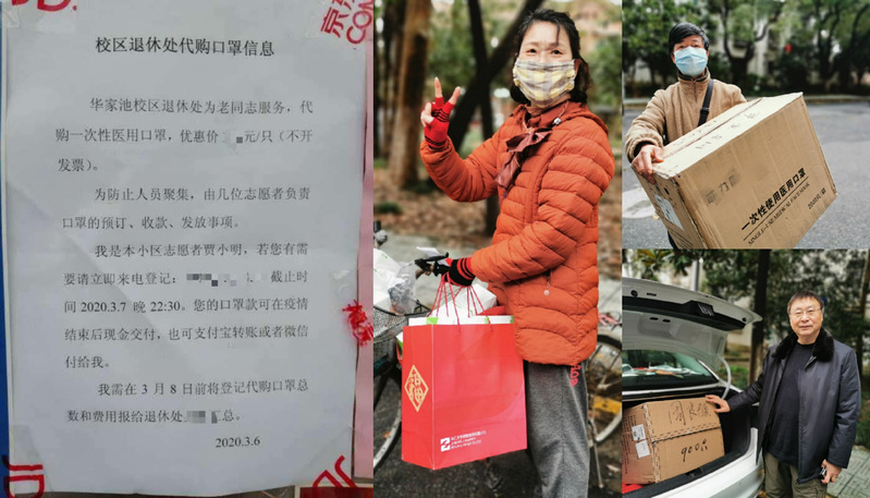 老年人是新冠肺炎的高危易感人群,也是疫情防控工作的重中之重。为解决离退休老同志口罩急缺问题,浙江大学离退休工作处华家池管理服务中心积极响应老同志需求,召集成立老同志志愿者分队,激励老同志互帮互助、共渡难关。志愿者充分挖掘老同志资源和力量,利用浙大校友积极寻找口罩代购和捐赠渠道,群策群力,守望相助,短短五天之内,将近万只口罩送至急需的老同志手中。