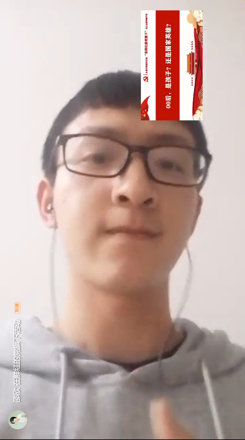 现场连线中,来自求是学院蓝田学园工科试验班(能源、化工与高分子)1910班的杨恩浩同学认为,“00后”能够挺身而出的原因还有对于养育自己的这个国家与社会的感恩。