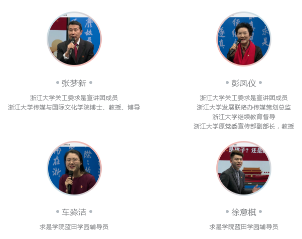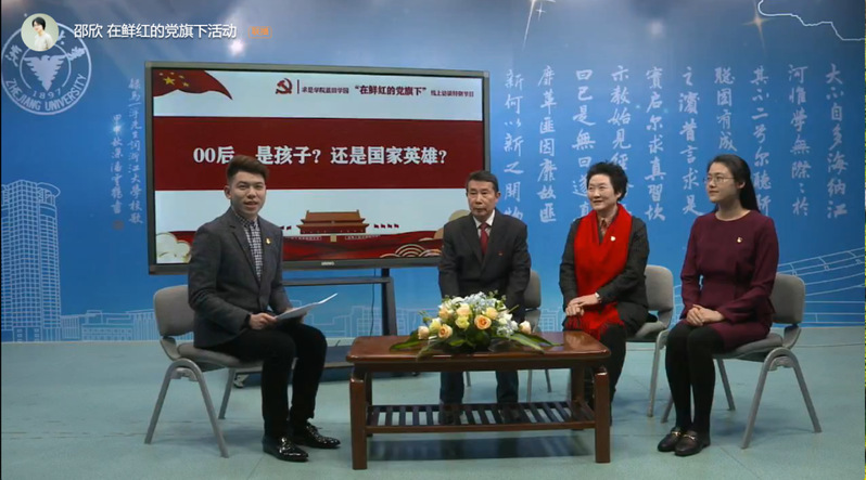 此次特别节目由求是学院蓝田学园辅导员徐意棋老师担任主持人,邀请了浙江大学关工委老党员张梦新教授、彭凤仪教授与求是学院蓝田学园辅导员车淼洁老师作为嘉宾,就“‘00后’,是孩子?还是国家英雄?”这一话题展开对话探讨,为参加此次活动的广大师生带来了富有启发性的思想交流机会。